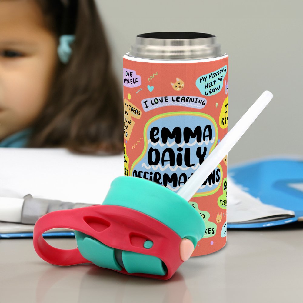 Offriamo colori vivaci, simpatici disegni e un nome personalizzato, che rendono la comune bottiglia d'acqua vivace e piena di divertimento infantile. Questo design permetterà ai bambini di divertirsi di più quando bevono l'acqua.