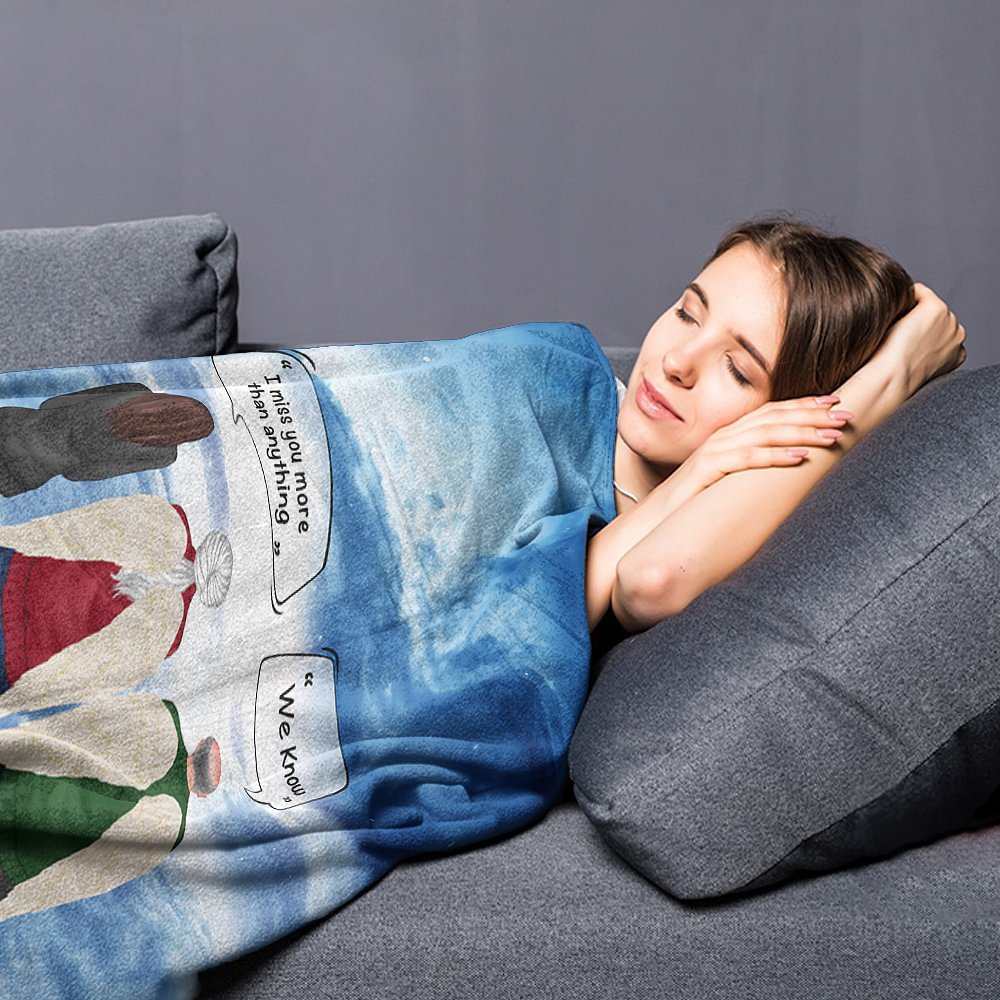 Il messaggio "I Miss You More Than Anything/We Miss You More Than Anything, I Know/We Know" (mi manchi più di ogni altra cosa/ci manchi più di ogni altra cosa, lo so/lo sappiamo) è splendidamente stampato sulla coperta, per ricordare alle persone di ricordare sempre le persone care che sono morte.
