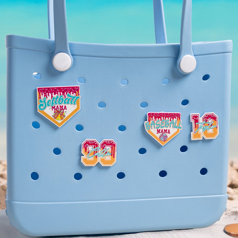 Il suo design leggero e compatto assicura che non vi appesantisca e può essere facilmente appeso a una borsa, a uno zaino o a qualsiasi oggetto dotato di fori per facilitarne il trasporto. Abbinato a una Bogg Bag o a un'altra borsa sportiva, può diventare un elemento di spicco, facendo risaltare l'attrezzatura della mamma sportiva a bordo campo, mostrando il sostegno per i suoi figli e un senso giocoso della moda.