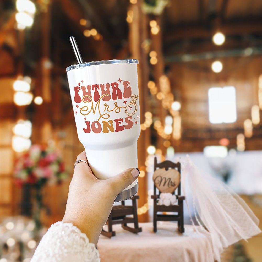 La scritta "IN MY ENGAGED ERA FUTURE" sul tumbler aggiunge emozione e gioia, catturando l'essenza di questa bellissima fase. Utilizzato a casa, al lavoro o durante l'organizzazione del matrimonio, questo tumbler diventerà un ricordo quotidiano del matrimonio imminente e della sua felicità.