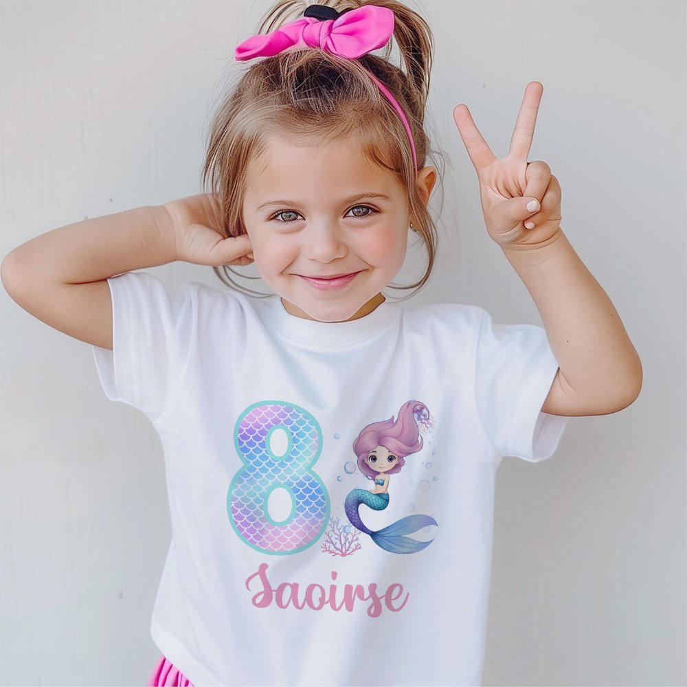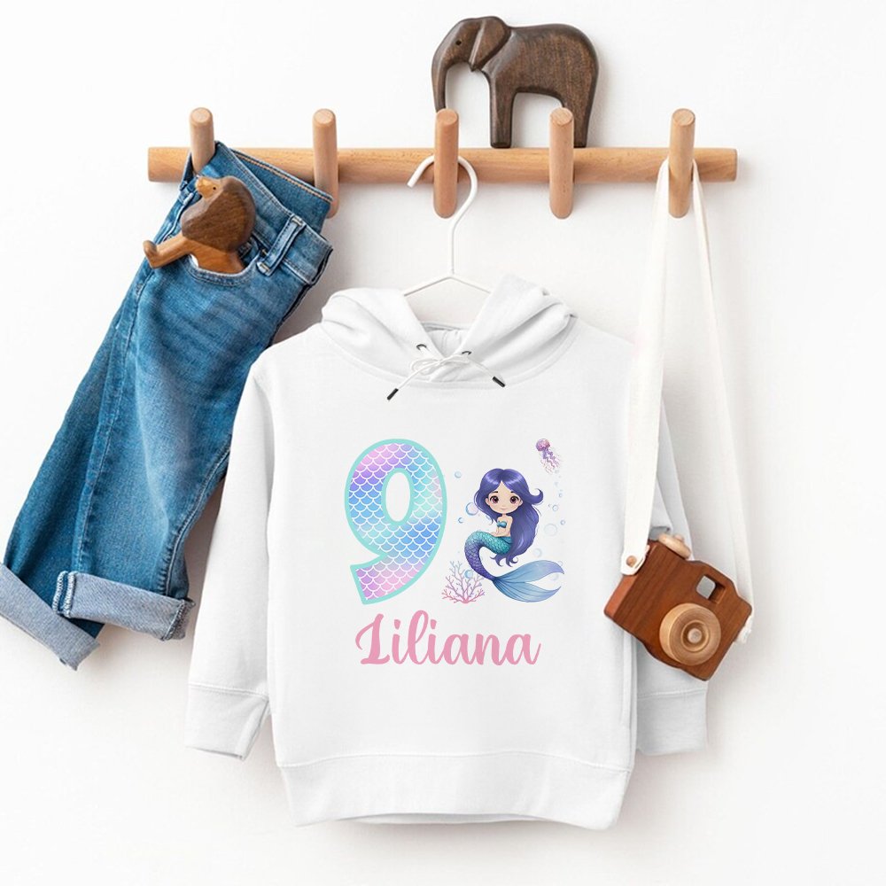 Questo elegante e raffinato capo di abbigliamento "In My Mermaid Era" presenta una grafica da sirena personalizzabile, che lo rende un regalo perfetto per le ragazze che adorano le sirene. Personalizzatelo con il nome e l'età della bambina, creando un capo unico e speciale.