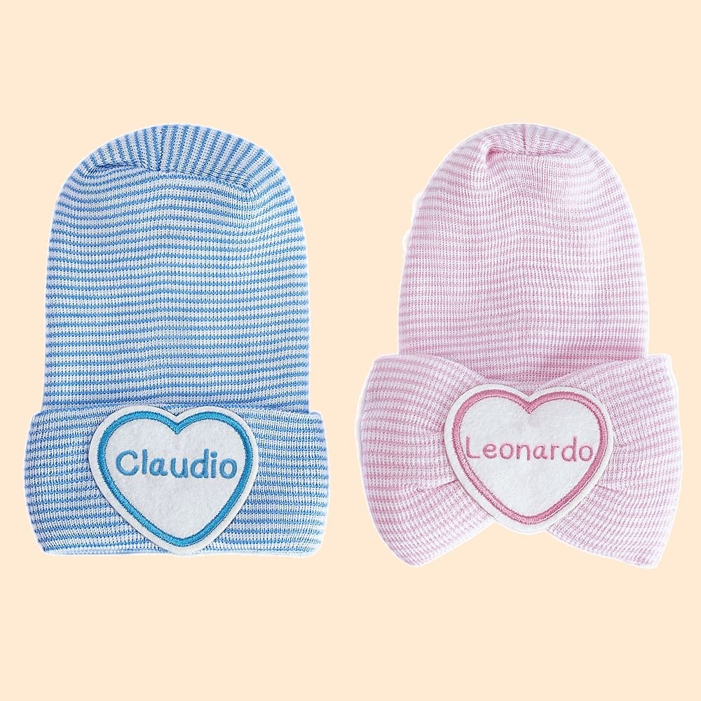 Date il benvenuto alla vostra bambina con questo cappello a maglia da neonato! Il cappello ha due stili, con e senza fiocco carino ed elegante. Puoi personalizzarlo con il nome del tuo bambino, lo aggiungeremo con il nostro processo di ricamo unico per aggiungere un tocco personale e renderlo un ricordo prezioso.
