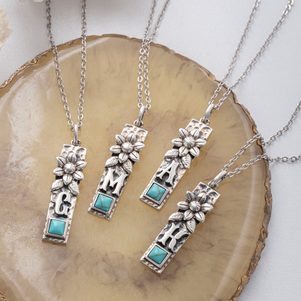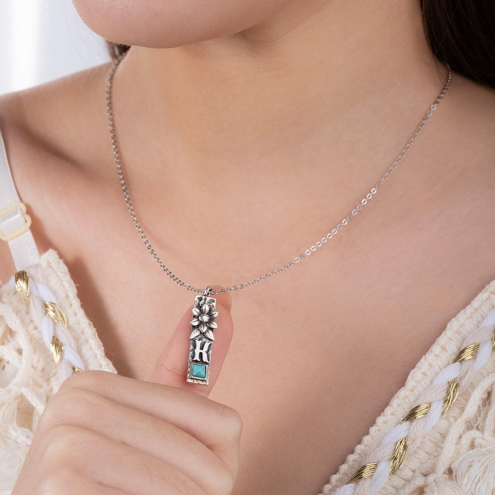 La collana presenta una squisita miscela di fascino bohémien ed eleganza. Adornata da splendide pietre turchesi e fiori delicati, può essere personalizzata con una lettera speciale. Questo tocco premuroso trasforma la collana in un gioiello unico che ha un valore sentimentale, rendendolo un ricordo prezioso per chi lo indossa.