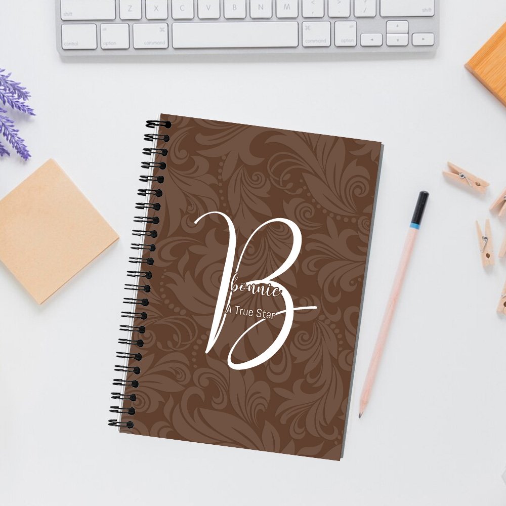 La copertina del taccuino presenta un elegante motivo stampato su uno sfondo solido, che rivela un senso di raffinatezza ed eleganza. Le lettere bianche brillanti aggiungono un tocco di unicità. È possibile scegliere o personalizzare il copywriting d'ispirazione e il proprio nome per creare articoli di cancelleria unici.