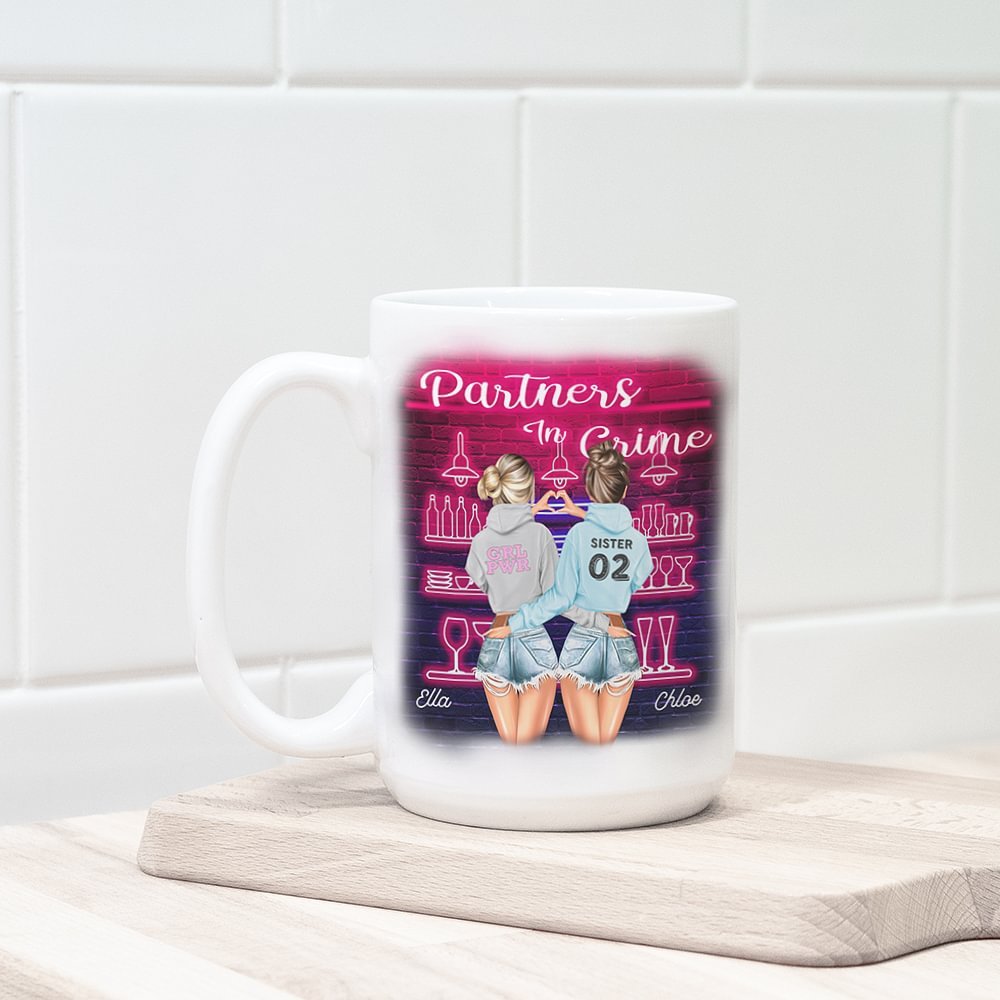 La tazza in ceramica bianca è progettata con un elemento bar e due belle ragazze, è possibile personalizzare l'acconciatura, i vestiti e il nome, simboleggiando l'amicizia tra amiche.