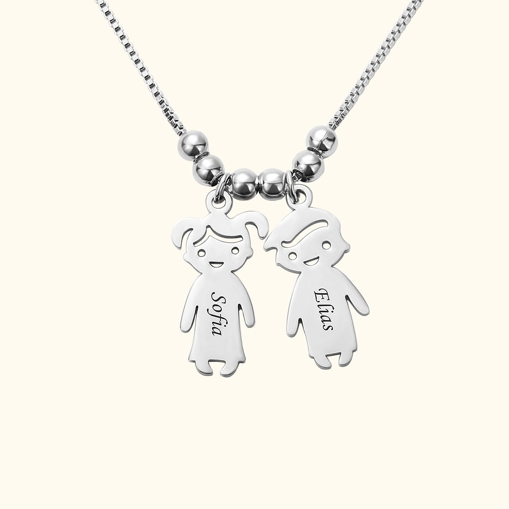 -Giocosa e adorabile, questa collana ha ciondoli da ragazzo e da ragazza, il che significa che i proprietari della collana hanno figli, e il ciondolo può anche essere inciso con un nome personalizzato, che è un grande regalo.