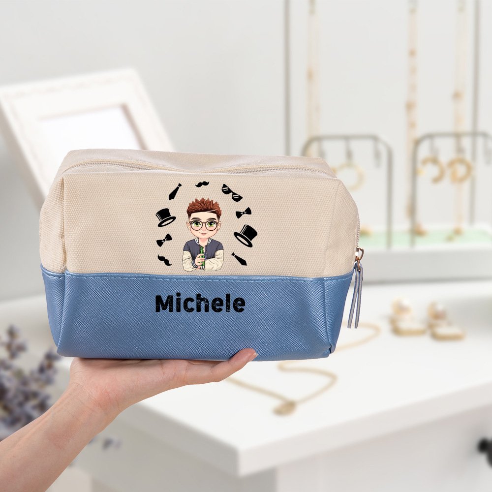 Questa borsa da toilette per uomo è un accessorio unico, personalizzabile con i tuoi personaggi dei cartoni animati preferiti. Ogni dettaglio, dall'abbigliamento agli accessori, rispecchia uno stile raffinato e moderno. Aggiungendo un nome personalizzato, la borsa diventerà il tuo compagno di viaggio esclusivo e inconfondibile.