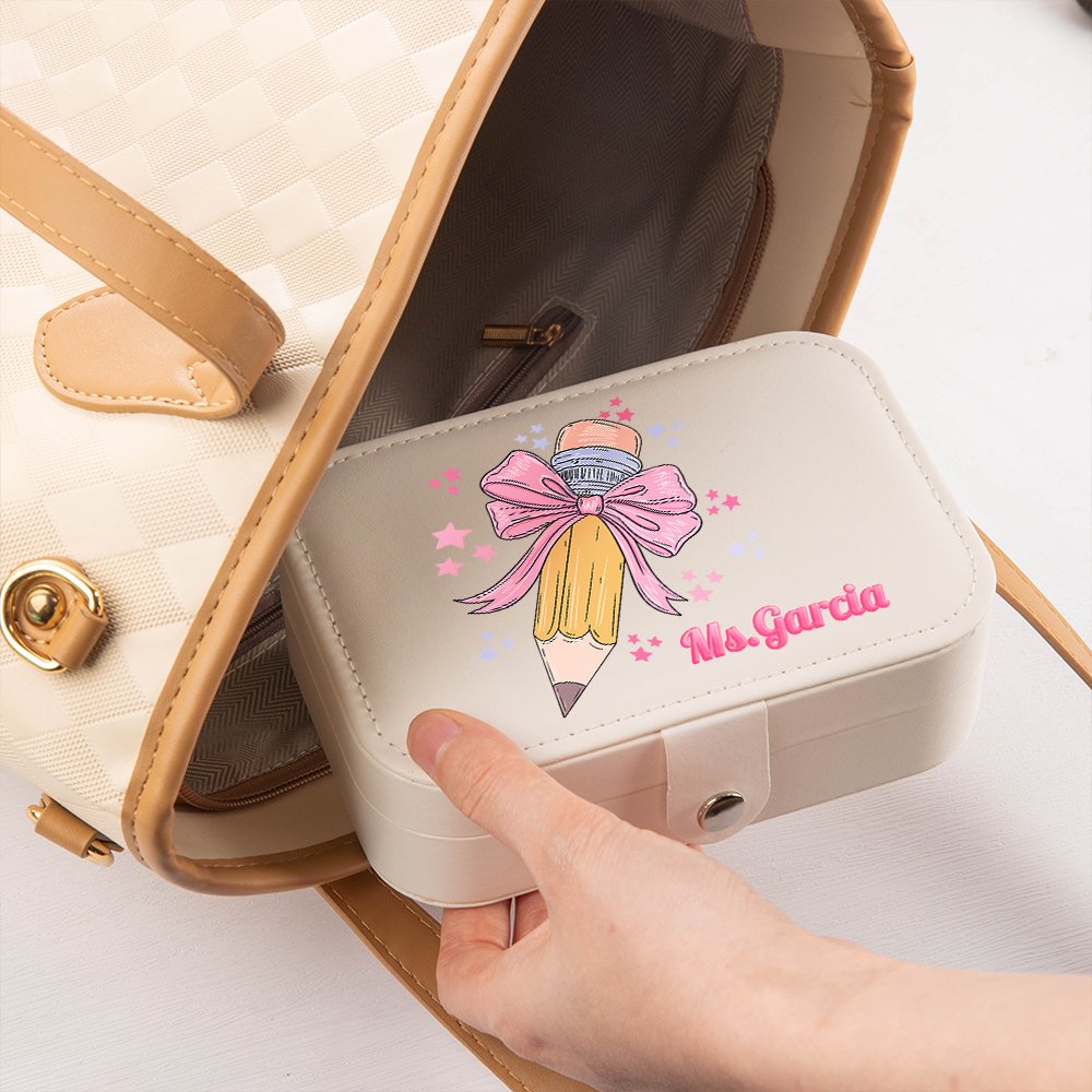Il portagioie è stato creato combinando un nodo a fiocco con un motivo a matita. È possibile personalizzare il saluto dell'insegnante per renderlo unico e mostrare il proprio apprezzamento. Sono disponibili 3 colori tra cui scegliere. L'ampio spazio di archiviazione e la portabilità lo rendono uno strumento utile nella vita quotidiana.