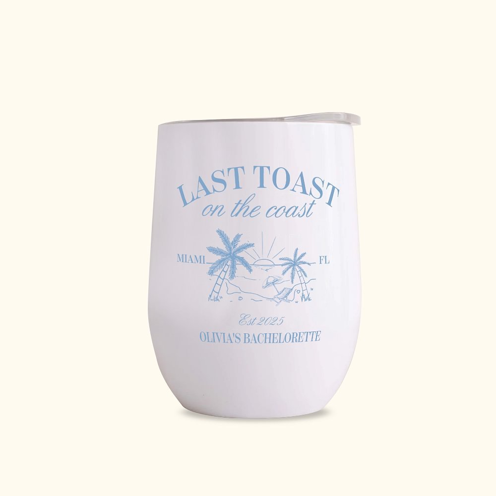 Ultimo brindisi personalizzato sulla costa 12 oz isolato vino Tumbler con nome damigella d'onore Addio al nubilato Beach Party regalo per lei
