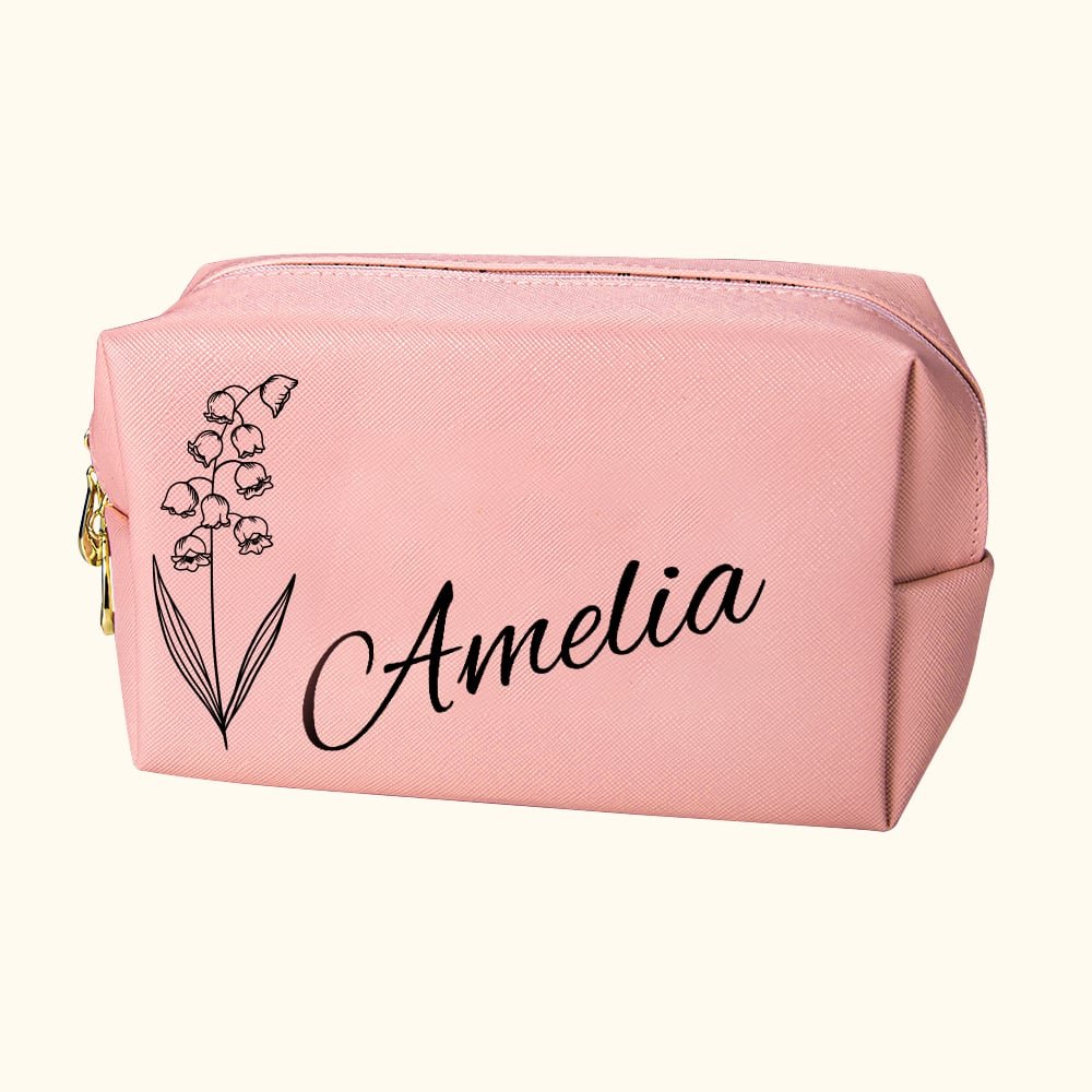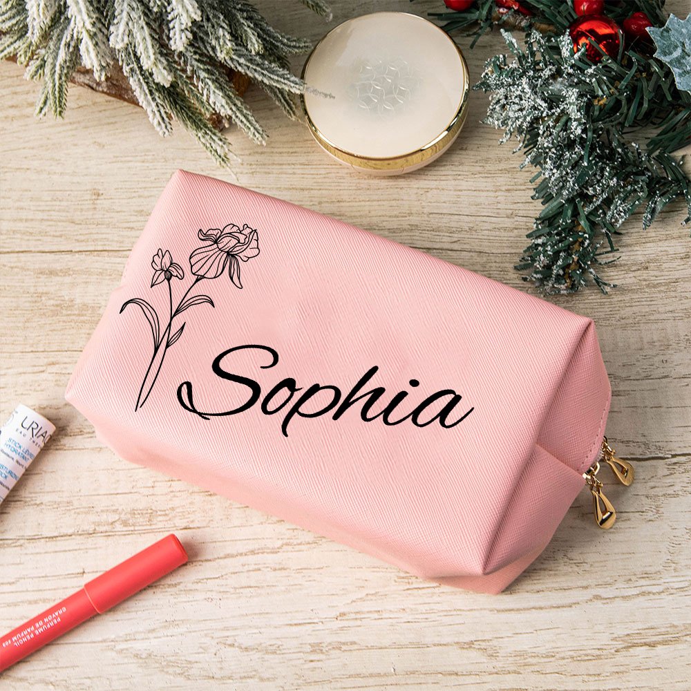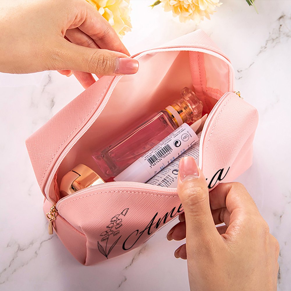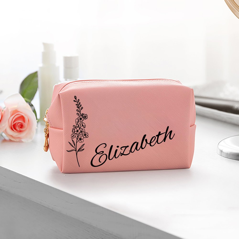 Questo sacchetto per il trucco è realizzato in alta qualità ed è disponibile nei colori rosa o bianco, che lo rendono un accessorio elegante. Personalizzate la borsa con il nome e il fiore di nascita della destinataria per renderla ancora più speciale.