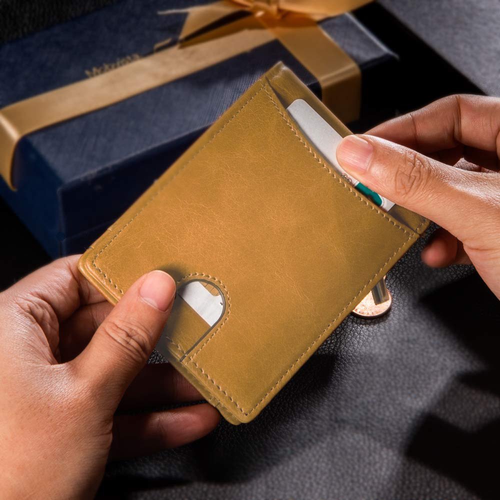 Una carta di uso comune può essere posizionata sul davanti e la speciale funzione di scorrimento del pollice consente di estrarre facilmente la carta. All'interno sono presenti 1 slot per carte trasparenti, 3 slot per carte private, una borsa con cerniera e 2 grandi slot per carte. Soddisfa diverse esigenze.