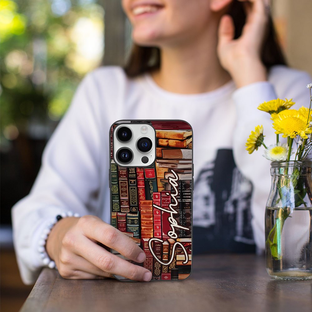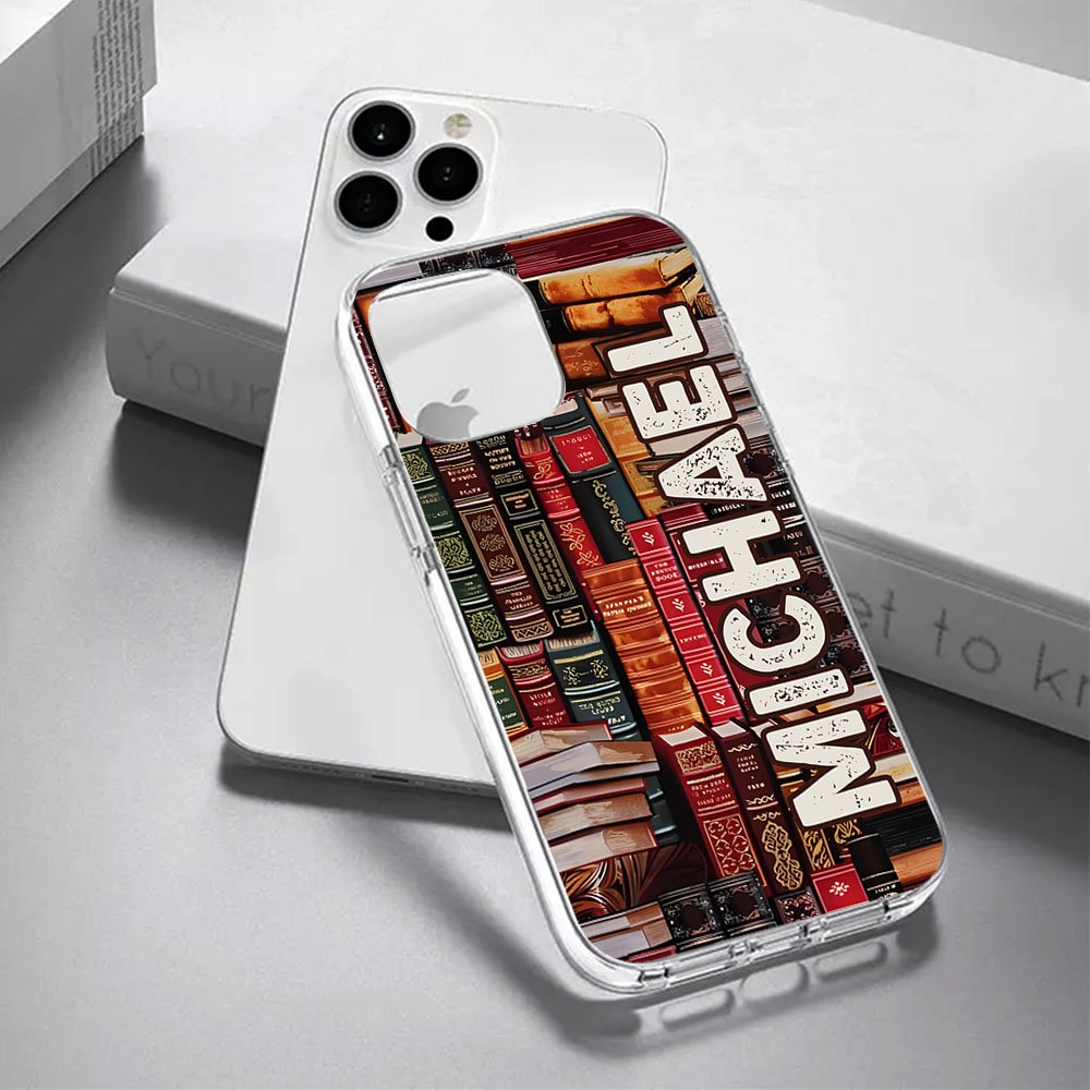 Personalizzato Biblioteca Libro Design retrò Custodia per telefono con nome Regalo di Natale Regalo di ritorno a scuola per gli amanti dei libri