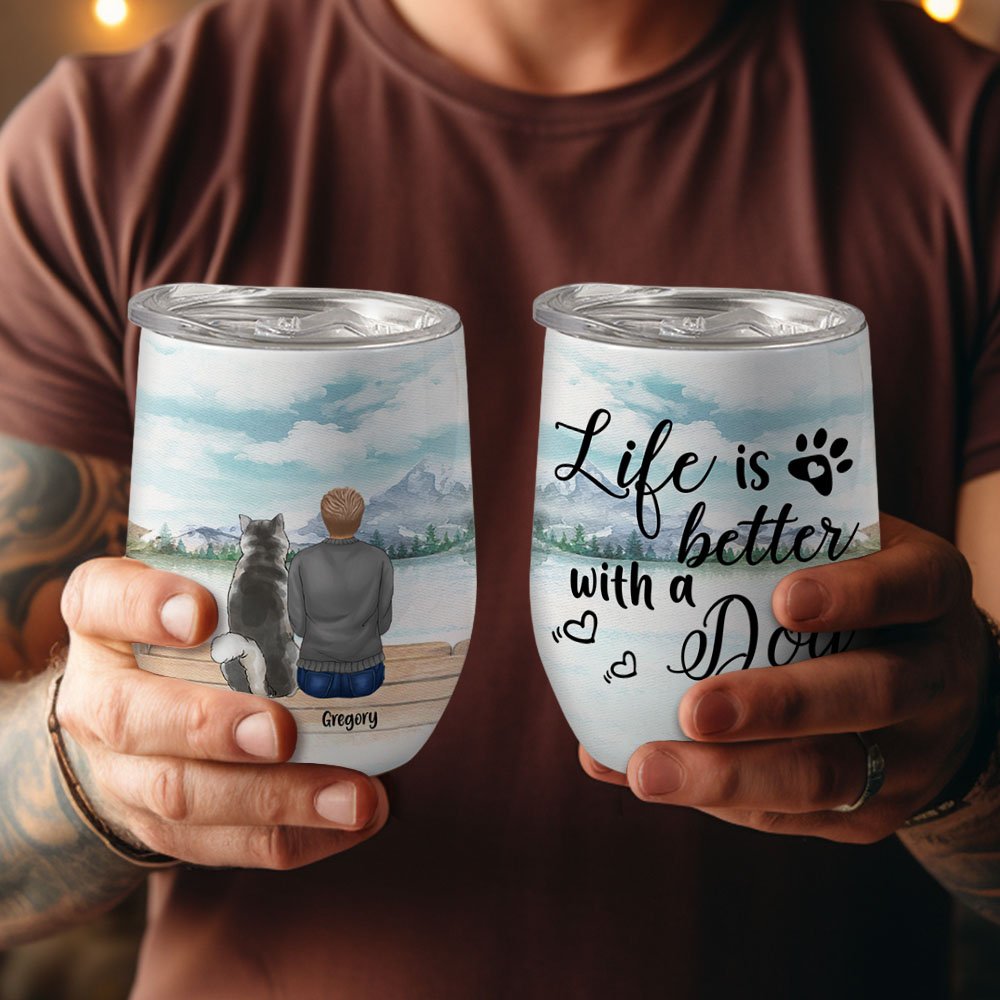 Personalizzato Life Is Better With Dogs Wine Tumbler in acciaio inox di qualità alimentare Regalo di Natale per gli amanti dei cani