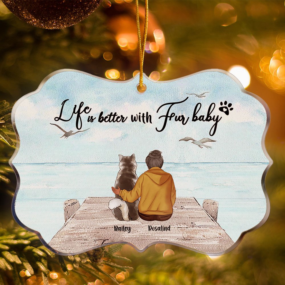 Personalizzato La vita è migliore con gli animali domestici di pelliccia Forma irregolare Ornamento acrilico regalo di Natale per gli amici