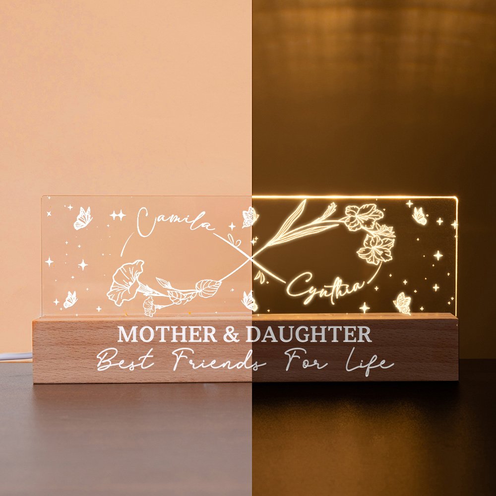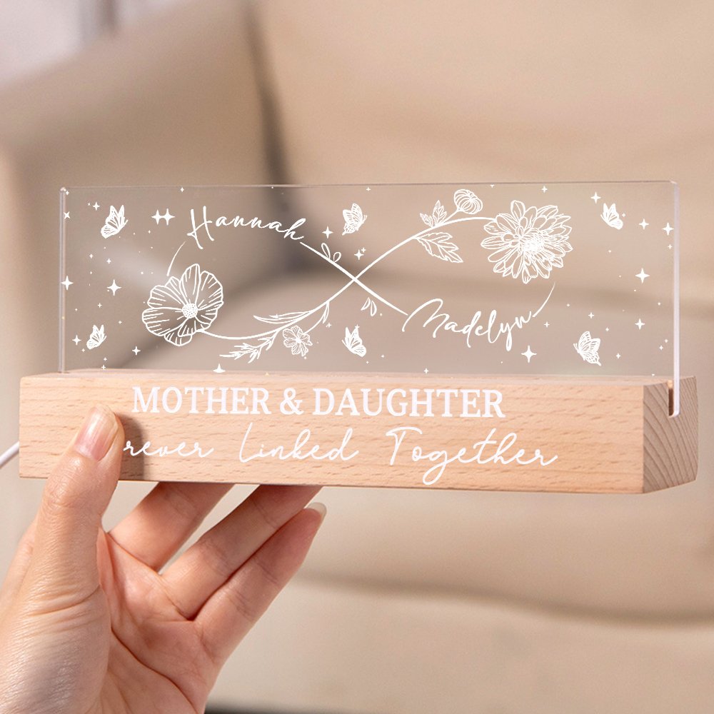 Il design di questa luce notturna si ispira all'amore infinito tra madre e figlia. Utilizza il simbolo dell'infinito come elemento e integra abilmente il motivo del fiore di nascita, che implica l'eternità dell'affetto tra madre e figlia. I nomi della madre e della figlia possono essere personalizzati sulla luce notturna e anche la base può essere personalizzata con un testo, rendendo ogni pezzo un'opera d'arte emozionale unica.