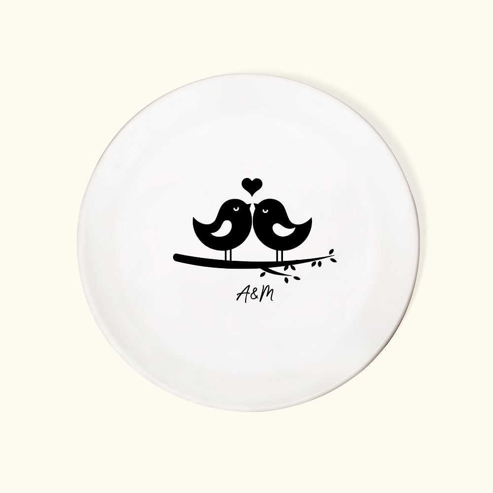 Aggiungete le vostre iniziali sotto una coppia di piccioncini sui rami. Lasciate che gli inseparabili, come testimoni del vostro amore, vi inviino sincere benedizioni. Sarete inseparabili come piccioncini, aggrappati l'uno all'altro e diventerete la persona più affidabile dell'altro.