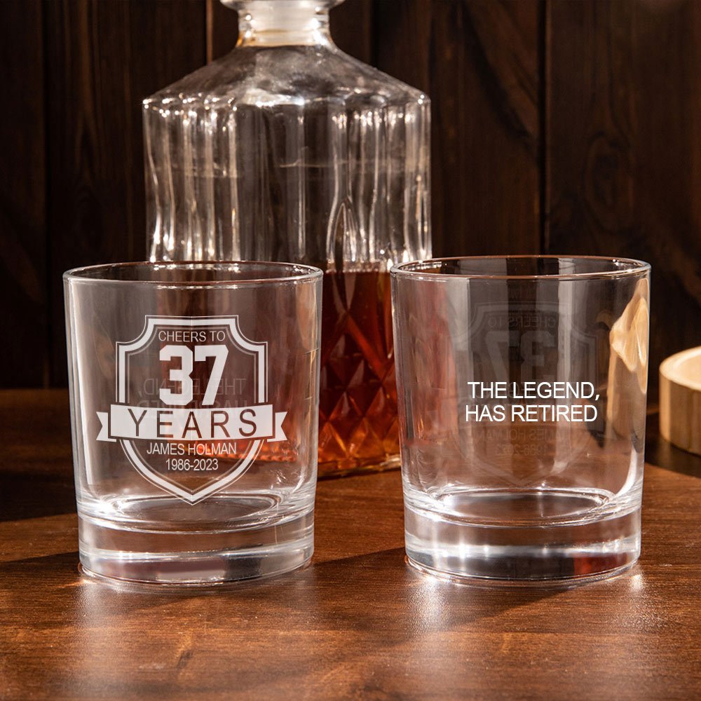 Questo bicchiere è ideale per un familiare o un amico in pensione in occasione di una festa di compleanno o di un'altra festa. Una varietà di contenuti personalizzati può far sentire il destinatario speciale e amato. Ora, celebrate la loro dedizione con il nostro bicchiere da whisky e intraprendete il prossimo emozionante viaggio.