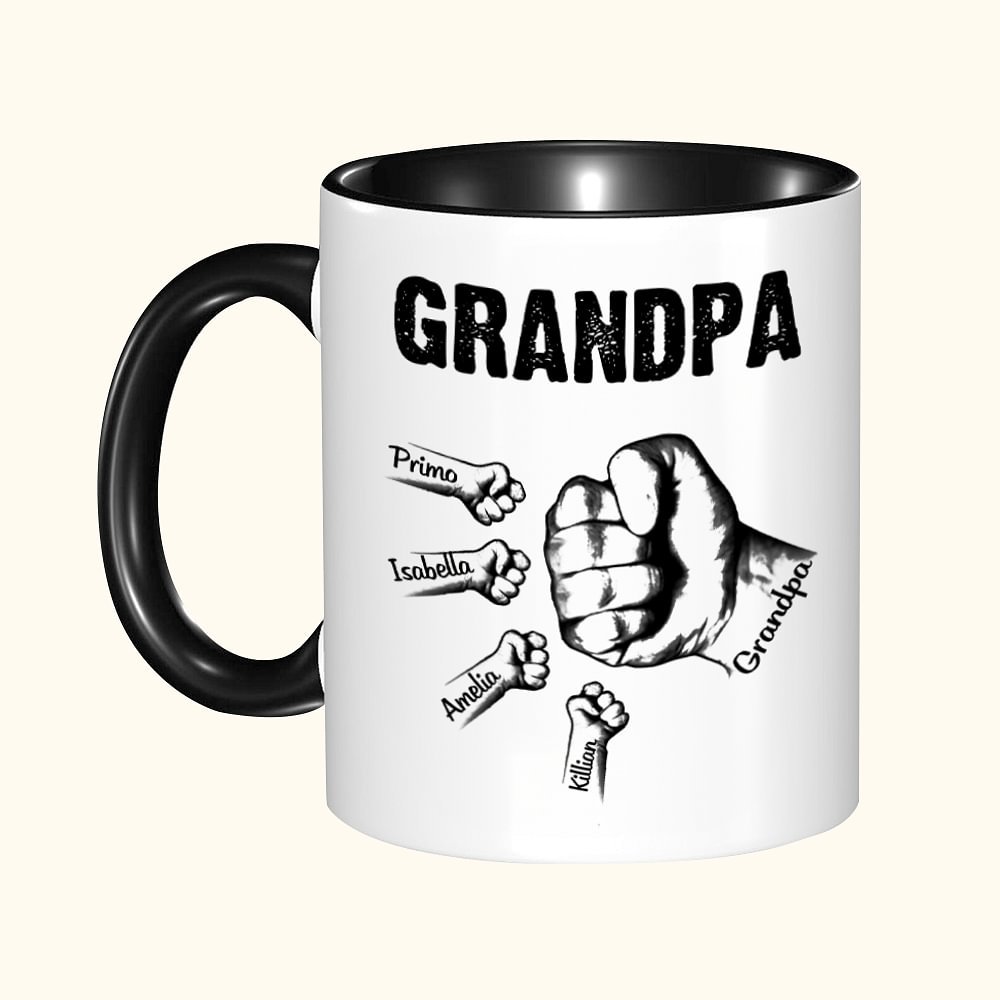 La tazza utilizza i pugni che si scontrano di padre e figli come elemento di design, simboleggiando forza, unità e amore. È possibile aggiungere il titolo del padre e i nomi dei figli alla parete in ceramica della tazza per creare un ricordo unico.