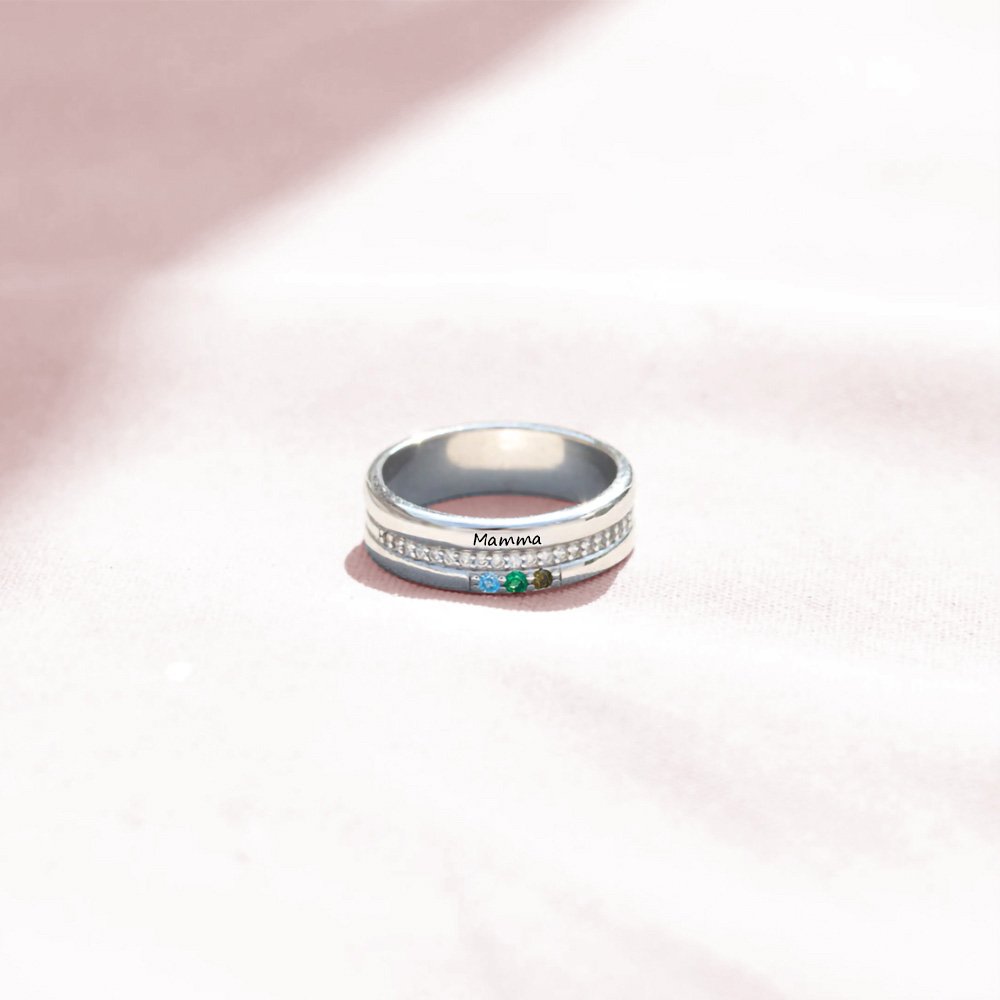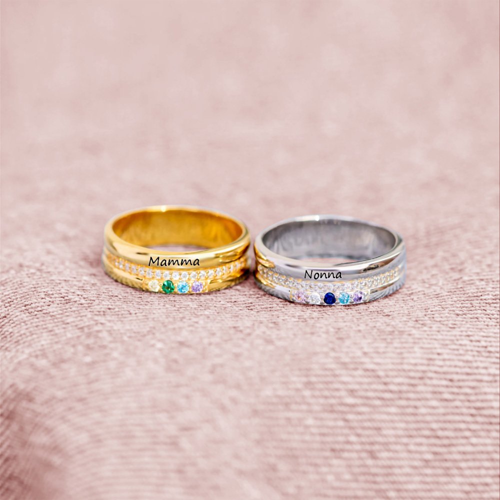 [PERSONALIZZATO DA VOI]: L'anello con pietra di nascita può essere personalizzato con 1-5 pietre di nascita; è possibile scegliere la pietra di nascita in base ai mesi rappresentati da ciascun bambino e impilarla sull'anello, rendendo unico il regalo di gioielli per madri, nonne, mogli, ecc.