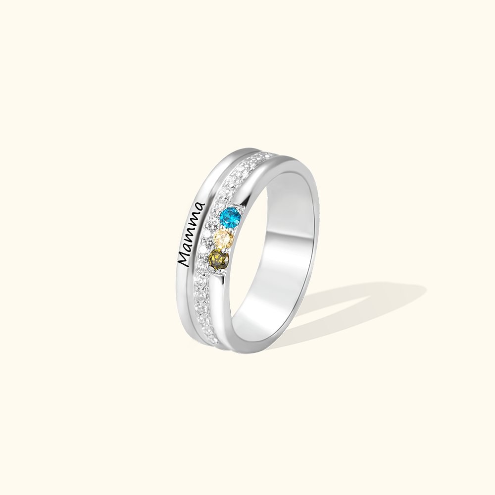 [ANELLO DI NASCITA DELLA MAMMA UNICO NEL SUO GENERE:] Questo anello per la mamma è stato progettato e realizzato tenendo conto del design di tendenza per soddisfare i più alti standard di qualità. L'anello è impreziosito da un cerchio di diamanti bianchi che ne esalta l'aspetto accattivante.