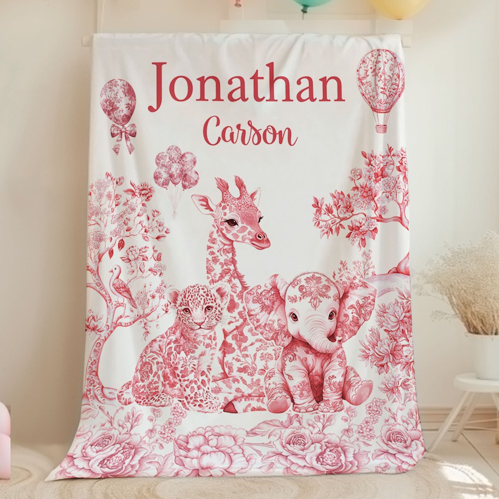 Questa coperta presenta affascinanti disegni di adorabili animali della foresta, tra cui elefanti, giraffe e leopardi. Ognuno di essi prende vita, trasportando il vostro piccolo nel magico mondo dei boschi. Personalizzatelo con un cognome e un nome personalizzati, trasformandolo in un tesoro unico. Scegliete tra 8 diversi colori di motivi per abbinarli perfettamente al vostro stile.
