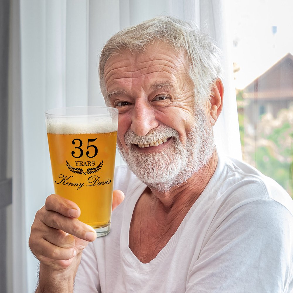 Le parole "YEARS" (anni) e il motivo del grano sono elegantemente visualizzati e servono a ricordare una vita ben vissuta e l'emozionante viaggio verso la pensione. Il tocco personalizzato dell'aggiunta del nome rende questo bicchiere davvero unico nel suo genere. Non si tratta solo di un recipiente per bere, ma di un ricordo personalizzato che verrà conservato per gli anni a venire.