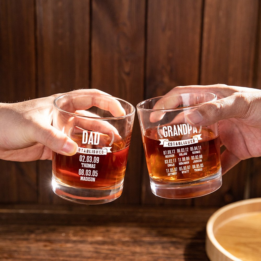 Ciò che distingue questo bicchiere da whisky è la possibilità di personalizzarlo. È possibile personalizzare il titolo e i nomi e le date di nascita dei figli per rendere questo regalo davvero unico. Che si tratti di un regalo per la festa del papà o per qualsiasi altra occasione, questo bicchiere da whisky farà sicuramente colpo e mostrerà ai vostri cari quanto ci tenete e vi congratulate con loro.