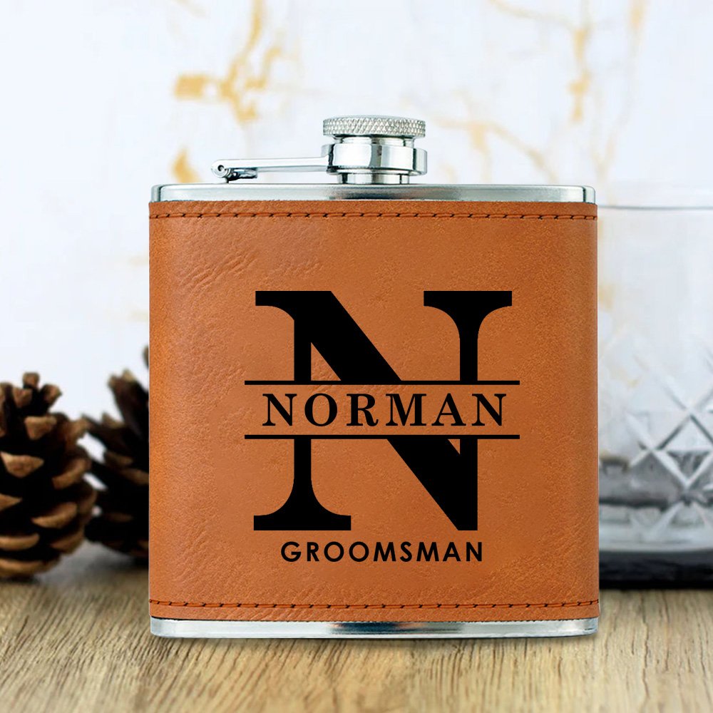 La fiaschetta è rivestita in pelle PU e offre un aspetto elegante e una sensazione confortevole. La lettera centrale non è solo accattivante, ma può anche essere personalizzata in base alle vostre esigenze, rendendola un regalo personalizzato unico nel suo genere. Il nome e il testo accuratamente stampati sulla fiaschetta evidenziano l'individualità, consentendo a ciascun testimone di sentire un senso di onore e rispetto esclusivo. Questa fiaschetta non è solo un pratico strumento per bere, ma anche un oggetto da collezione con valore commemorativo.