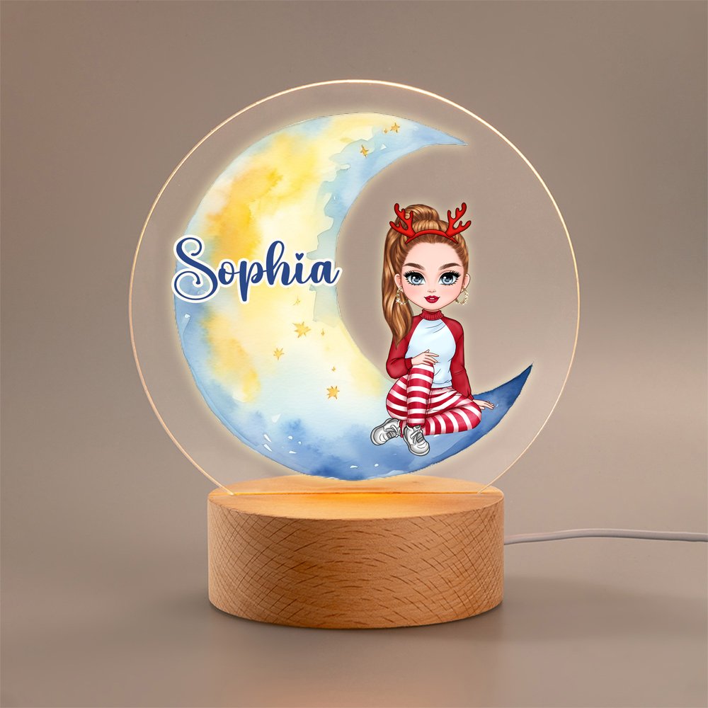 Questa luce notturna presenta una famiglia di personaggi dei cartoni animati. Può essere personalizzata dalla testa ai piedi, con un nome, per diverse fasce d'età, tra cui neonati, adolescenti, adulti e anziani. Lo sfondo a tema lunare crea un'atmosfera calda e tranquilla, facendo sentire questa luce notturna come a casa.