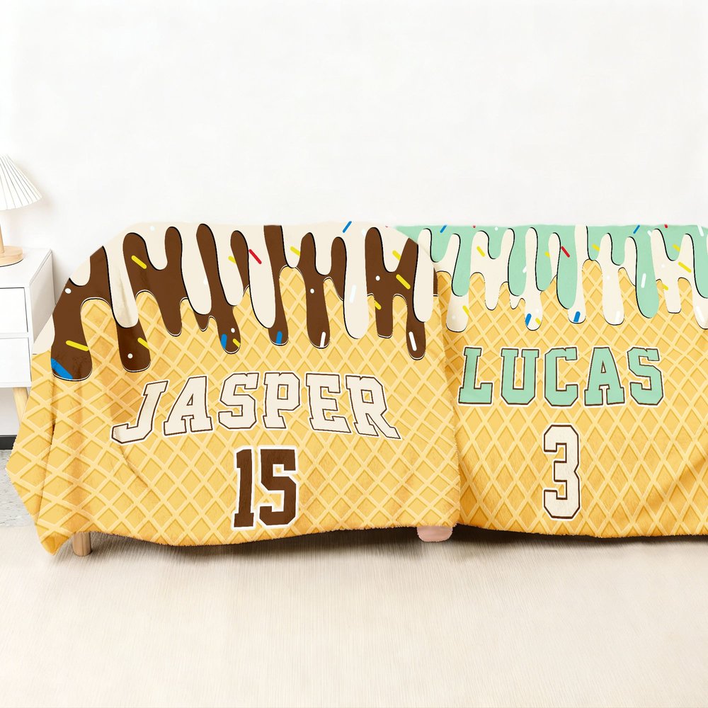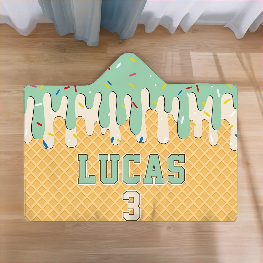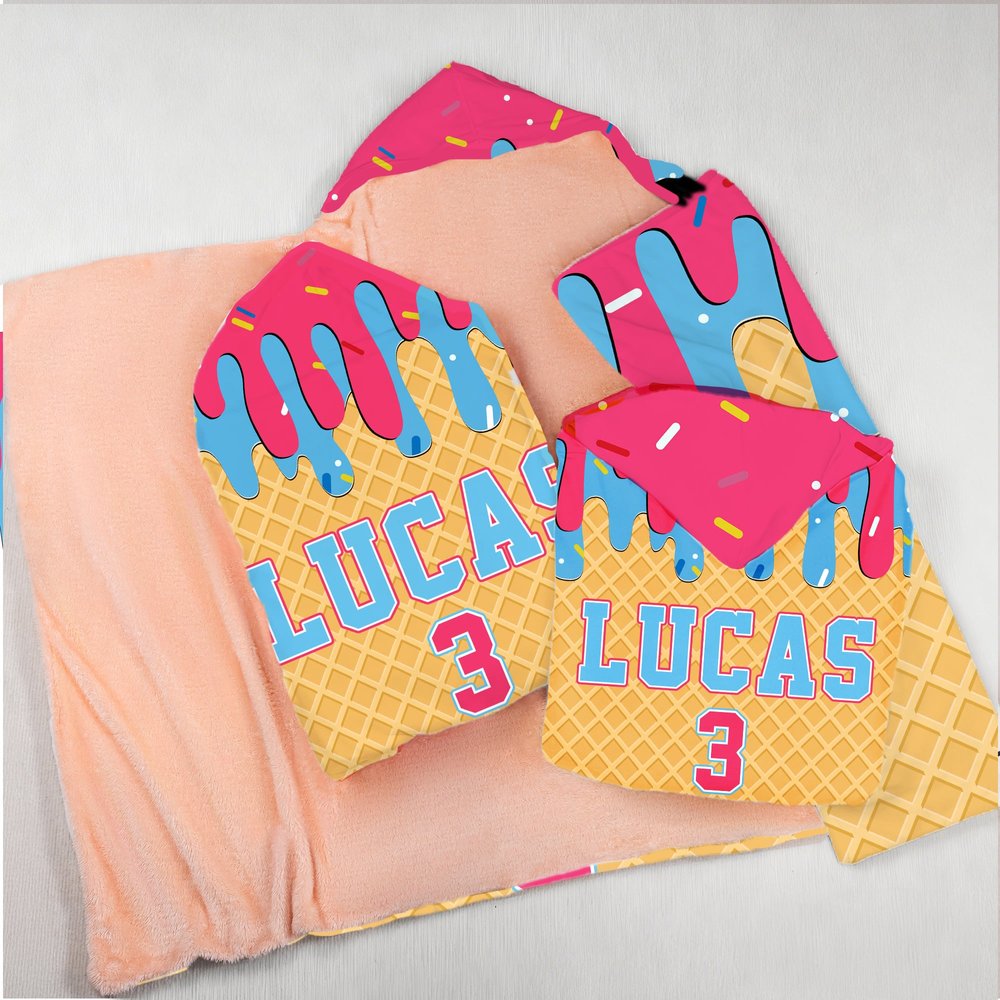 Questa coperta con cappuccio incorpora elementi di sport come il baseball e il softball nella vita quotidiana, consentendo una personalizzazione con nomi, numeri di maglia e motivi giocosi come il gelato. Ogni dettaglio è pensato per creare un senso di esclusività e individualità.
