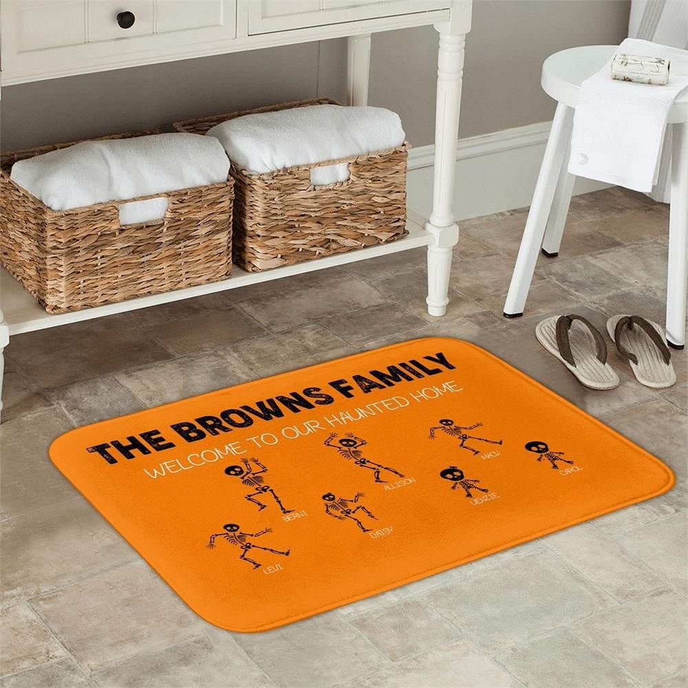 Questo zerbino crea una forte atmosfera di Halloween grazie alla visualizzazione di 2-8 personaggi a forma di teschio dei cartoni animati. È inoltre possibile personalizzare il testo e il nome per creare decorazioni speciali, che riflettono la creatività del proprietario e l'attenta preparazione per la festa.