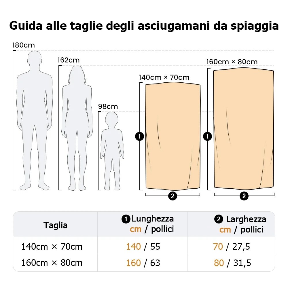 | Caratteristica: | Superassorbente, ad asciugatura rapida, antisabbia, resistente e morbido, oversize, leggero e portatile, tema sport |