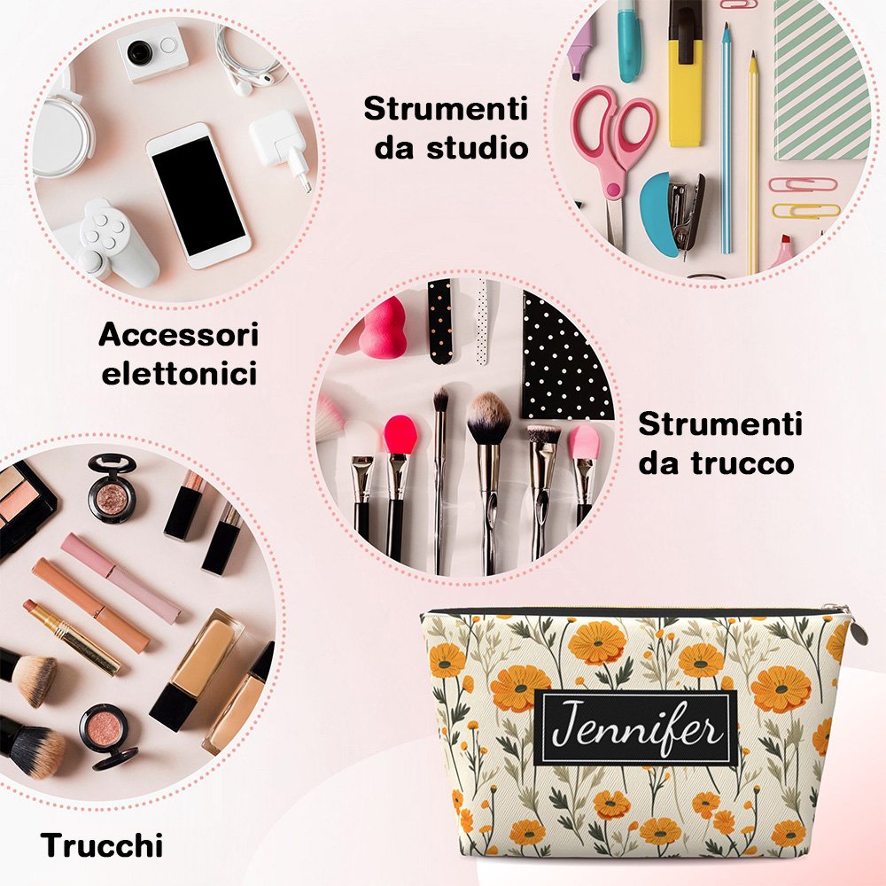 Questa borsa da trucco si distingue per il suo design personalizzato, con eleganti motivi floreali dedicati a ogni mese dell’anno. Ogni dettaglio è pensato per trasmettere calore e sorpresa. La stampa del nome aggiunge un tocco speciale, trasformando questo oggetto in un regalo curato e ricco di significato. Il suo stile dolce e raffinato è perfetto per esprimere affetto con delicatezza.