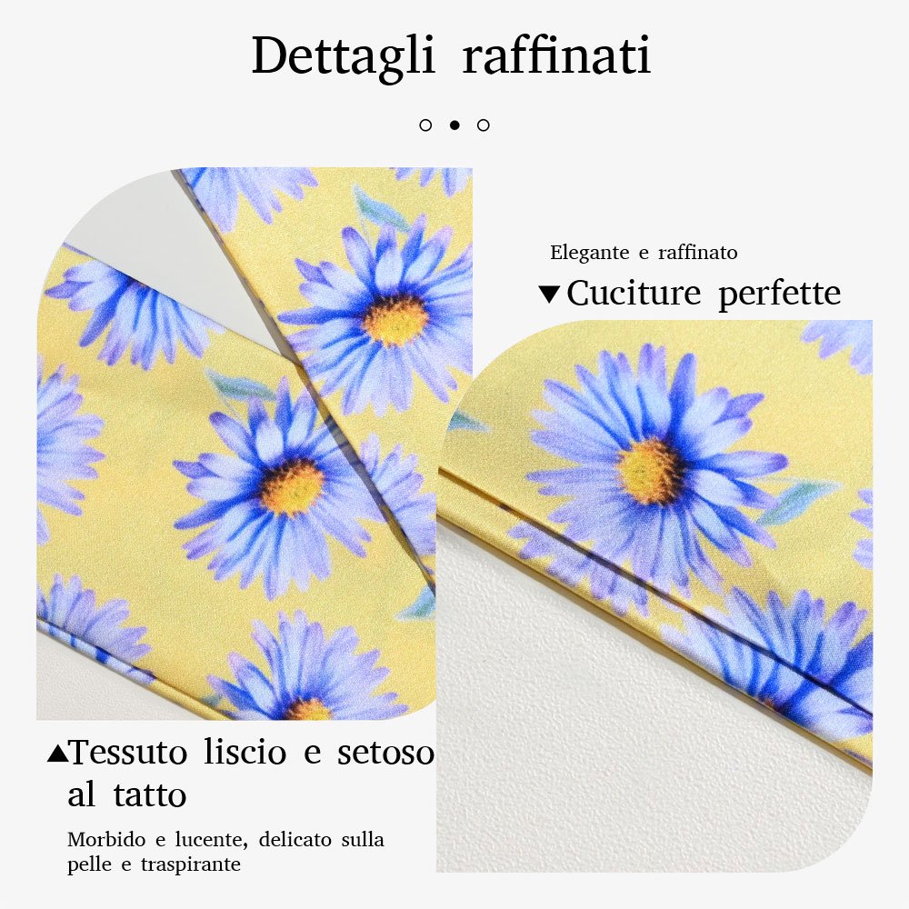 Realizzata in poliestere di alta qualità, questa sciarpa è morbida come la seta, leggera e piacevole sulla pelle. Il tessuto resistente allo sbiadimento e all'usura mantiene i colori brillanti nel tempo. Ideale per le giornate primaverili, estive e autunnali.