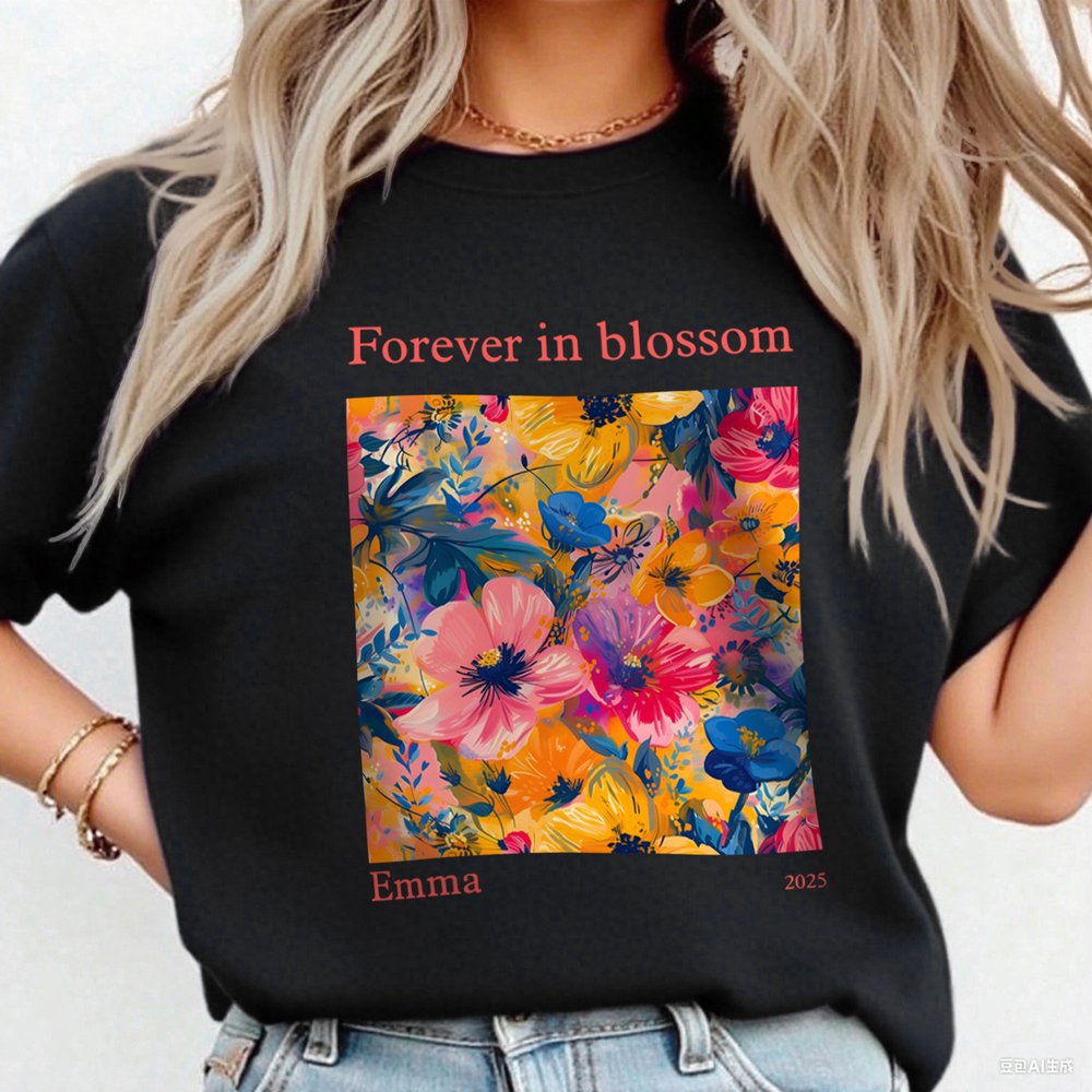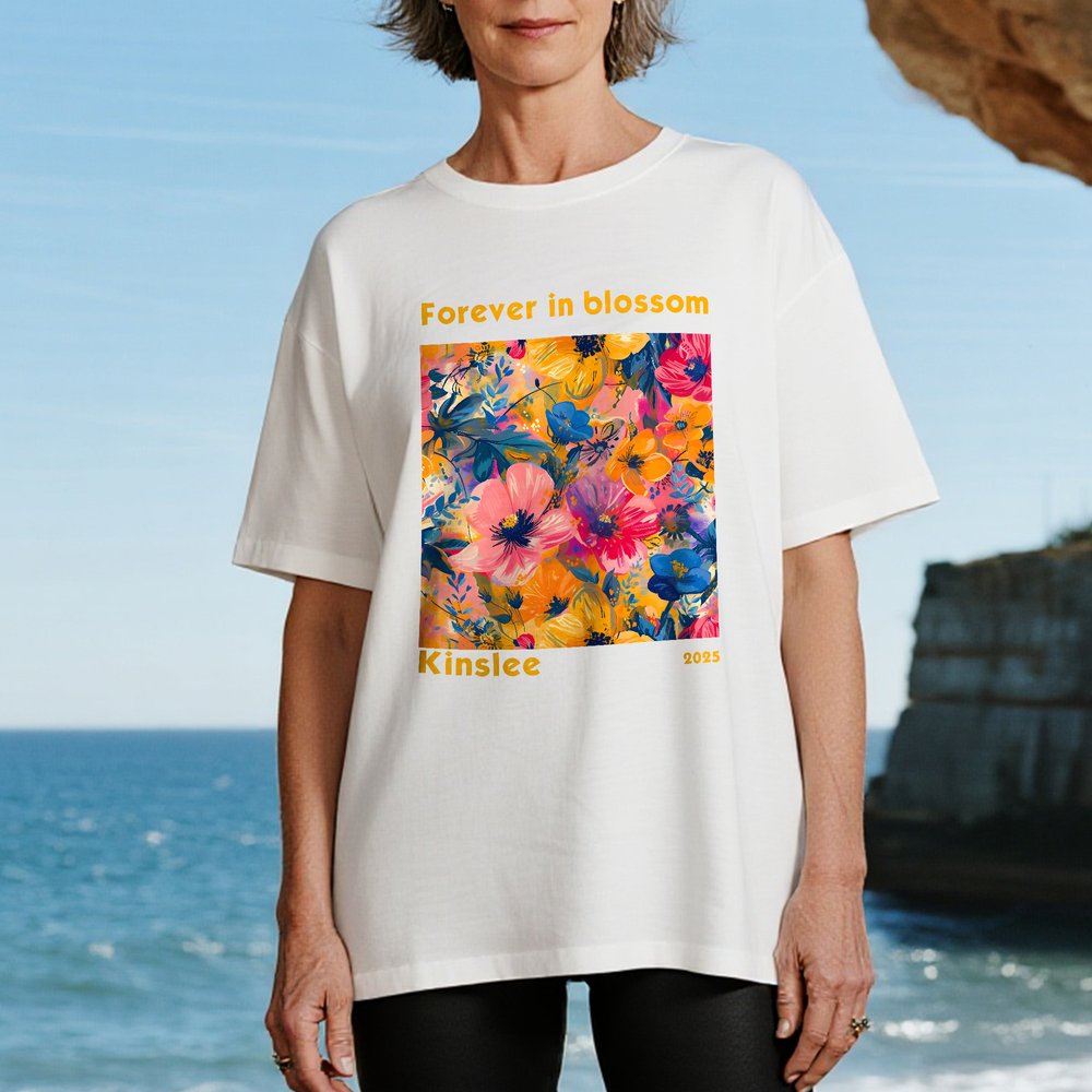 Questa maglietta ha come elemento distintivo i fiori che sbocciano, proprio come in un mercato dei fiori, abbracciando il vostro spirito di libertà. È molto adatta agli amanti della natura e a chiunque abbracci la bellezza della vita con un atteggiamento spensierato. L'esclusiva personalizzazione del testo e del nome vi mantiene a vostro agio senza rinunciare allo stile.