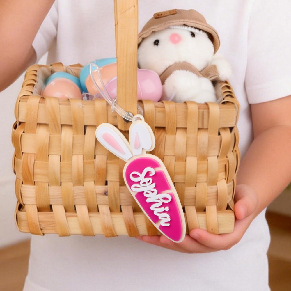 Caratterizzata da un'adorabile forma di carota abbinata a nomi personalizzati, questa etichetta per cestino aggiunge un tocco personalizzato a qualsiasi celebrazione pasquale. I colori vivaci e gli accenti giocosi delle orecchie di coniglio conferiscono un fascino vivace, rendendola la decorazione perfetta per i cesti pasquali.