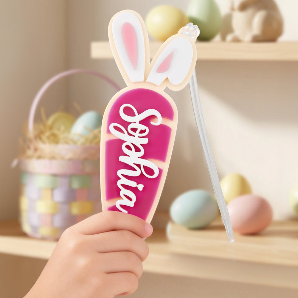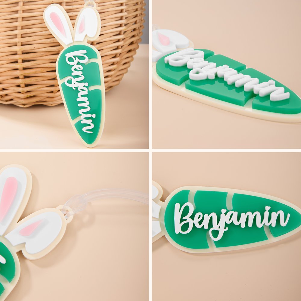 Realizzata in acrilico di alta qualità e resistenza, questa targhetta è costruita per durare nel tempo. La superficie liscia e la squisita lavorazione assicurano che il nome e il disegno rimangano chiari e accattivanti anche dopo un uso ripetuto: un accessorio affidabile ed elegante per le vostre festività pasquali.