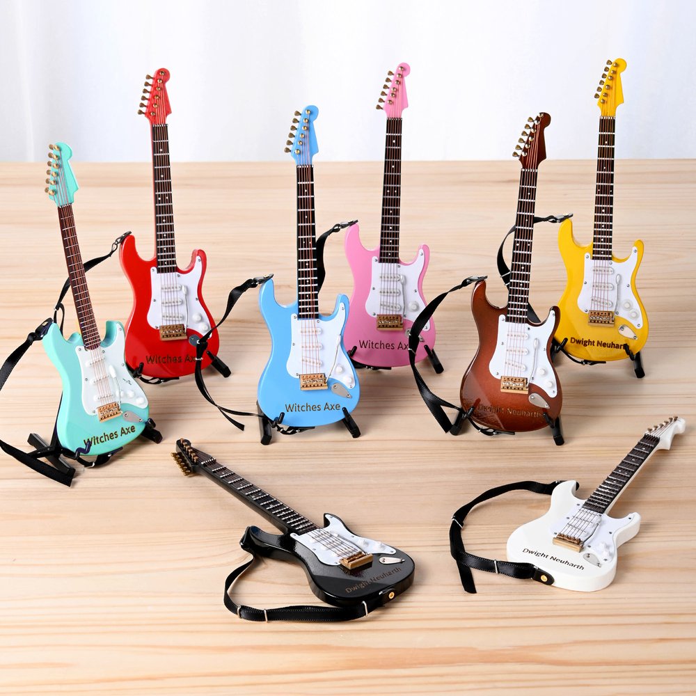 La decorazione è dotata di un supporto e di una cinghia. Se posizionata sulla scrivania, nel soggiorno o nell'ufficio di casa, questa decorazione può aggiungere un'atmosfera artistica e una personalità. Sono anche decorazioni ideali per studi musicali, negozi di chitarre o scuole di musica, che possono ispirare la passione per la creazione e l'apprendimento della musica.