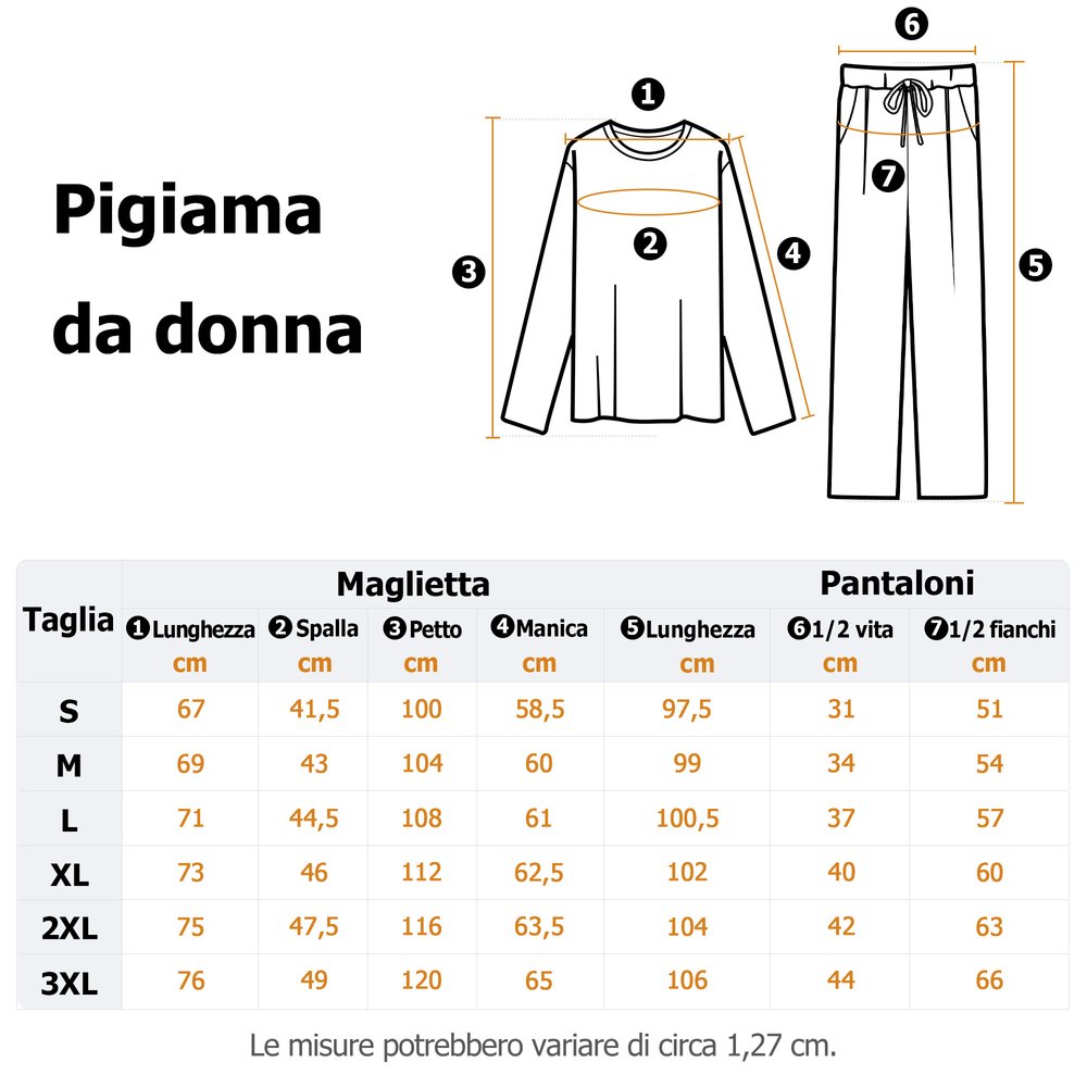 Materiale: Top del pigiama - 100% cotone, pantaloni del pigiama - 95% poliestere, 5% spandex