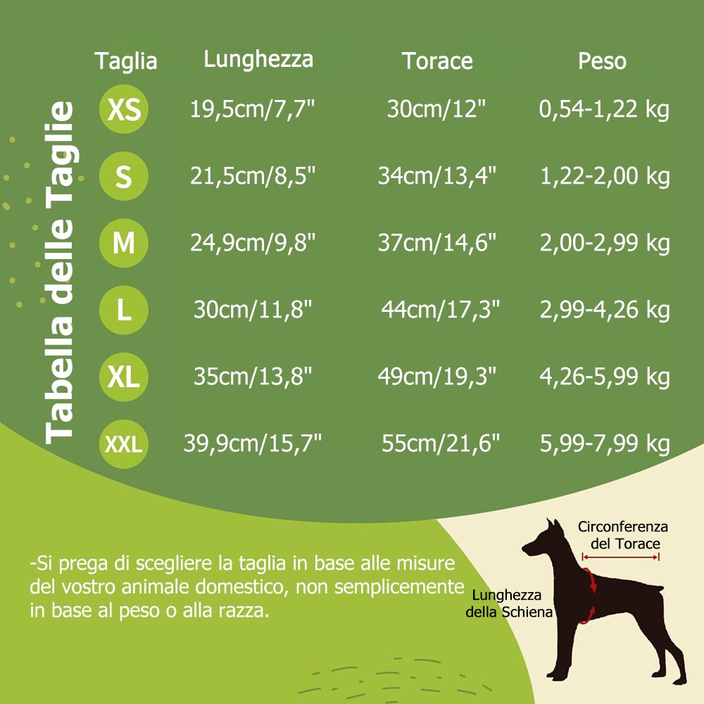 | Dimensione: | Piccolo animale domestico - XS, S, M, L, XL, XXL Animale domestico medio e grande - S, M, L, XL, XXL |