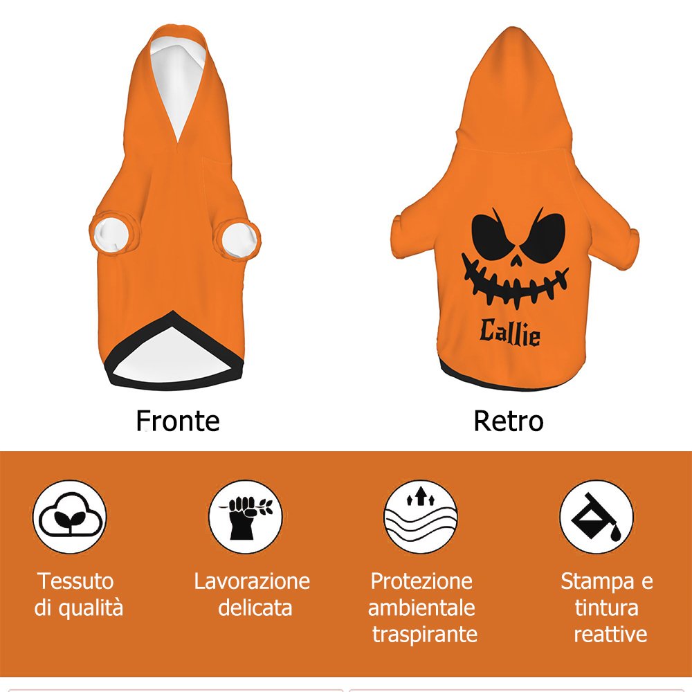 Questa felpa con cappuccio è perfetta per le feste di Halloween, per le riunioni di famiglia o di amici, per aggiungere divertimento agli animali domestici. Questa felpa con cappuccio è disponibile in diverse taglie per cani di piccola, media e grande taglia.