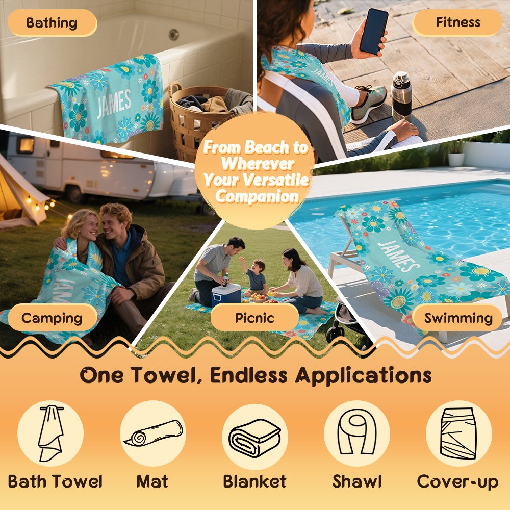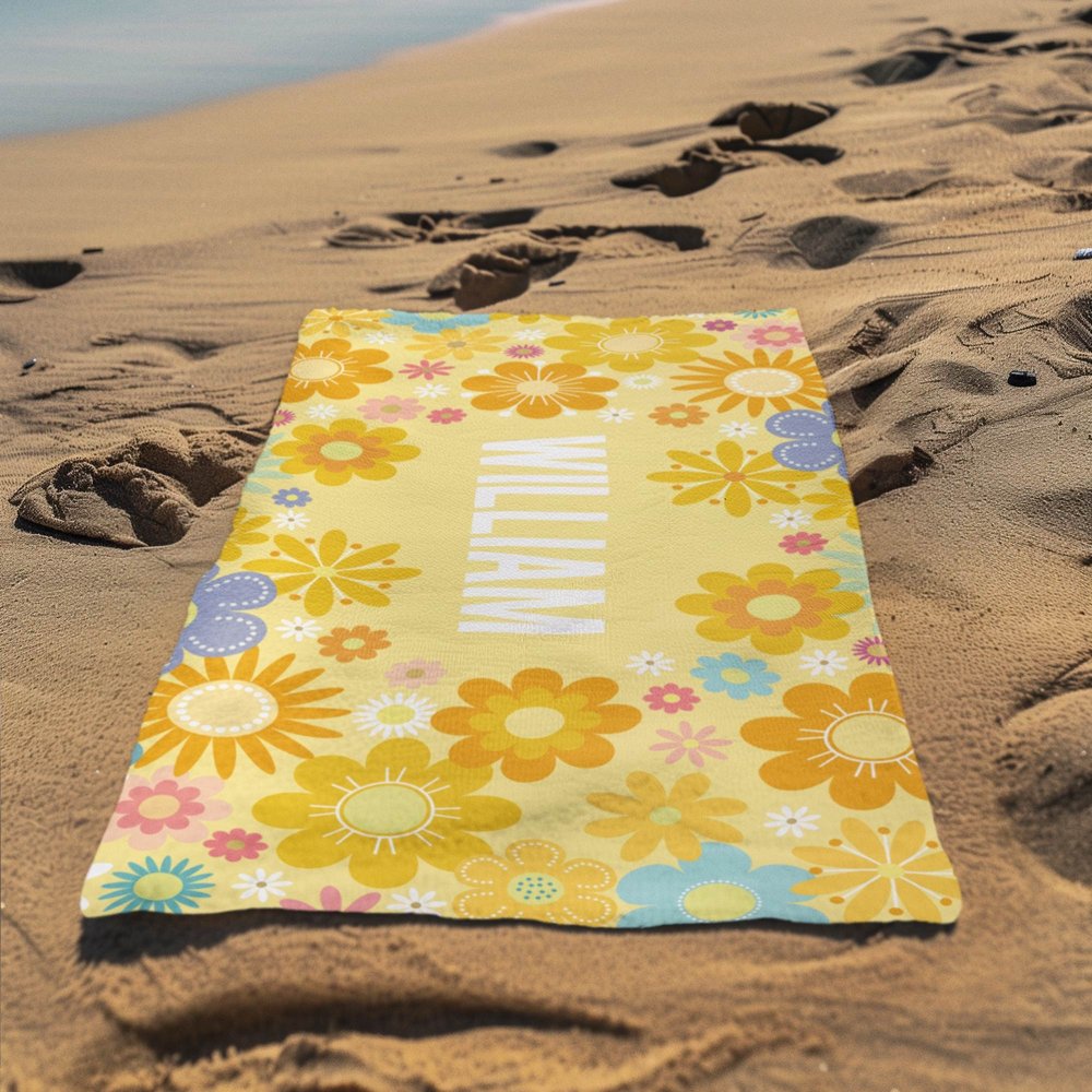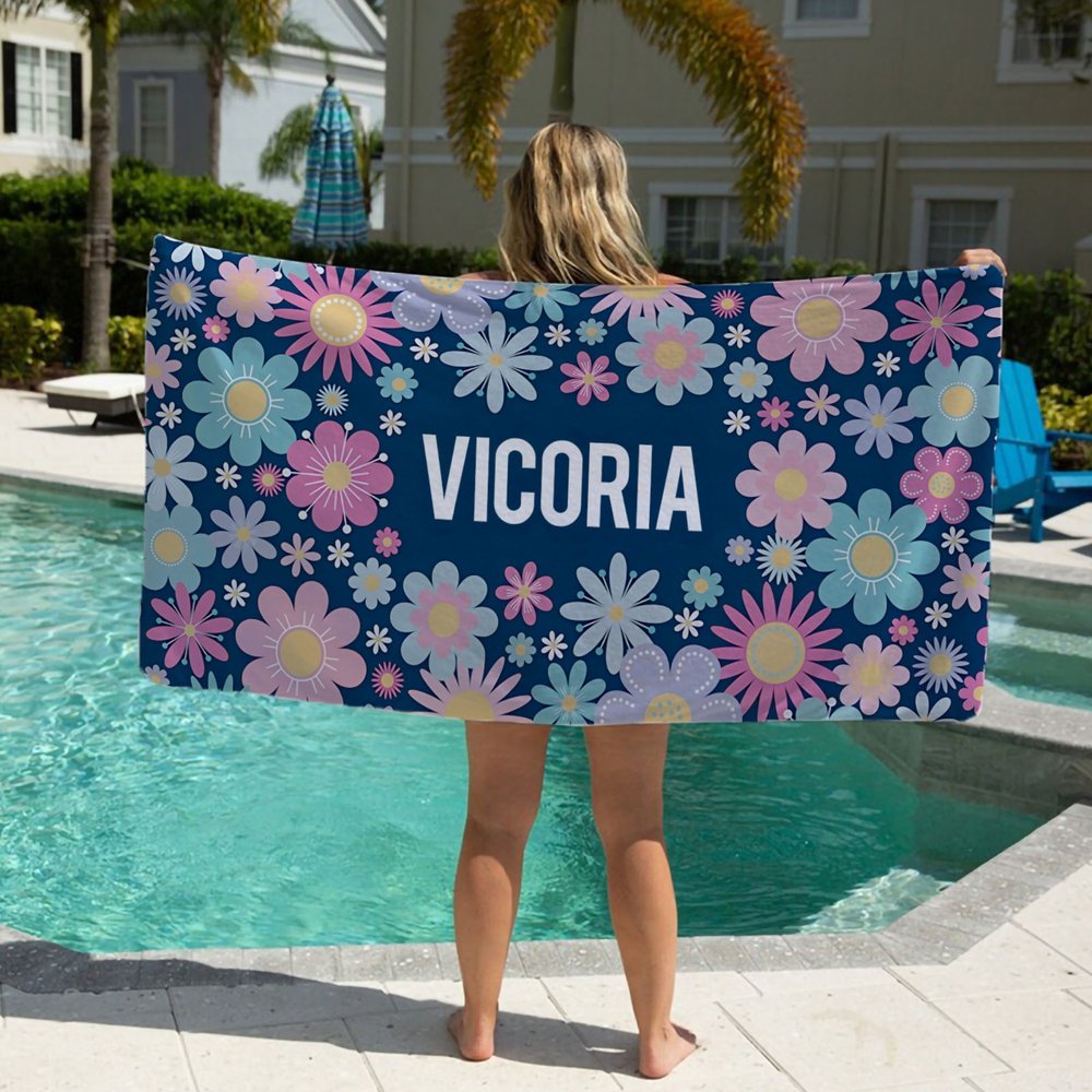 Questo telo mare è caratterizzato da fiori colorati e adorabili, che emanano un fascino romantico e fresco. Il centro è ornato da un nome personalizzato, che aggiunge un tocco di personalizzazione. Offriamo sei opzioni di colori vivaci, ognuna con uno stile unico.
