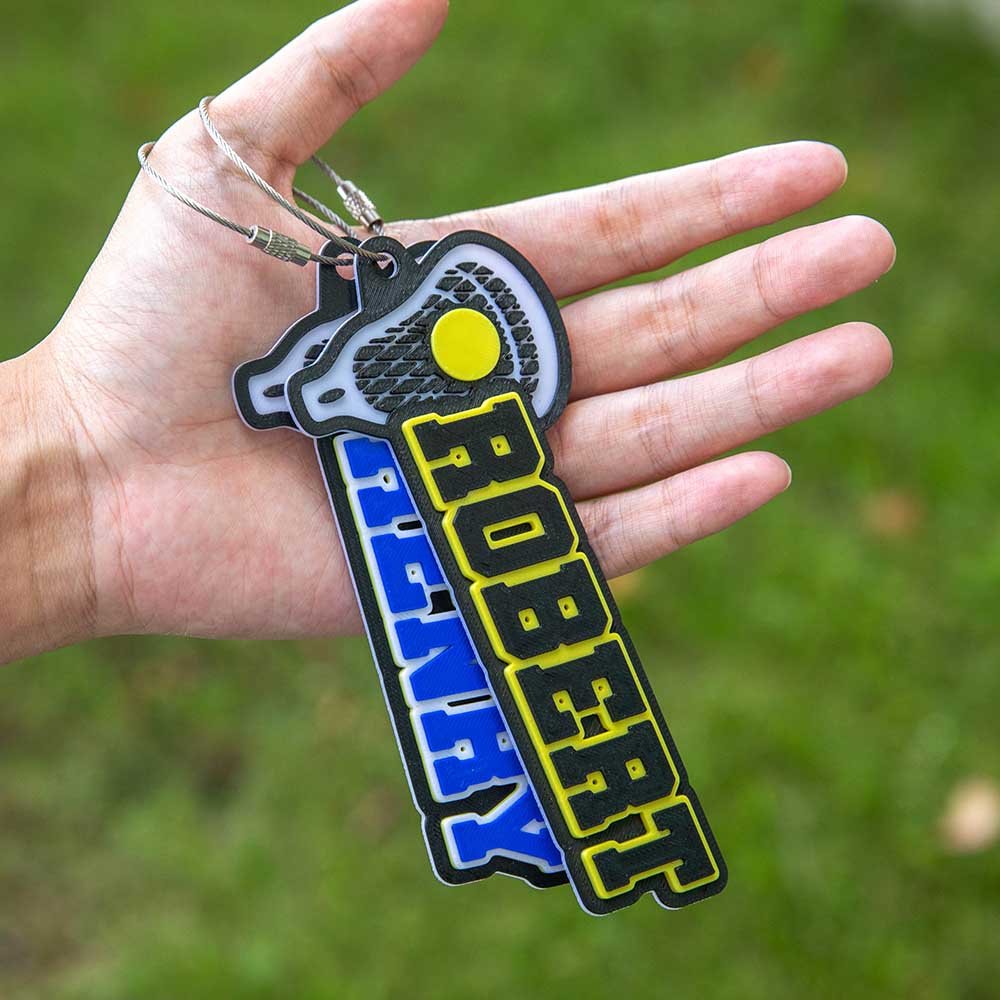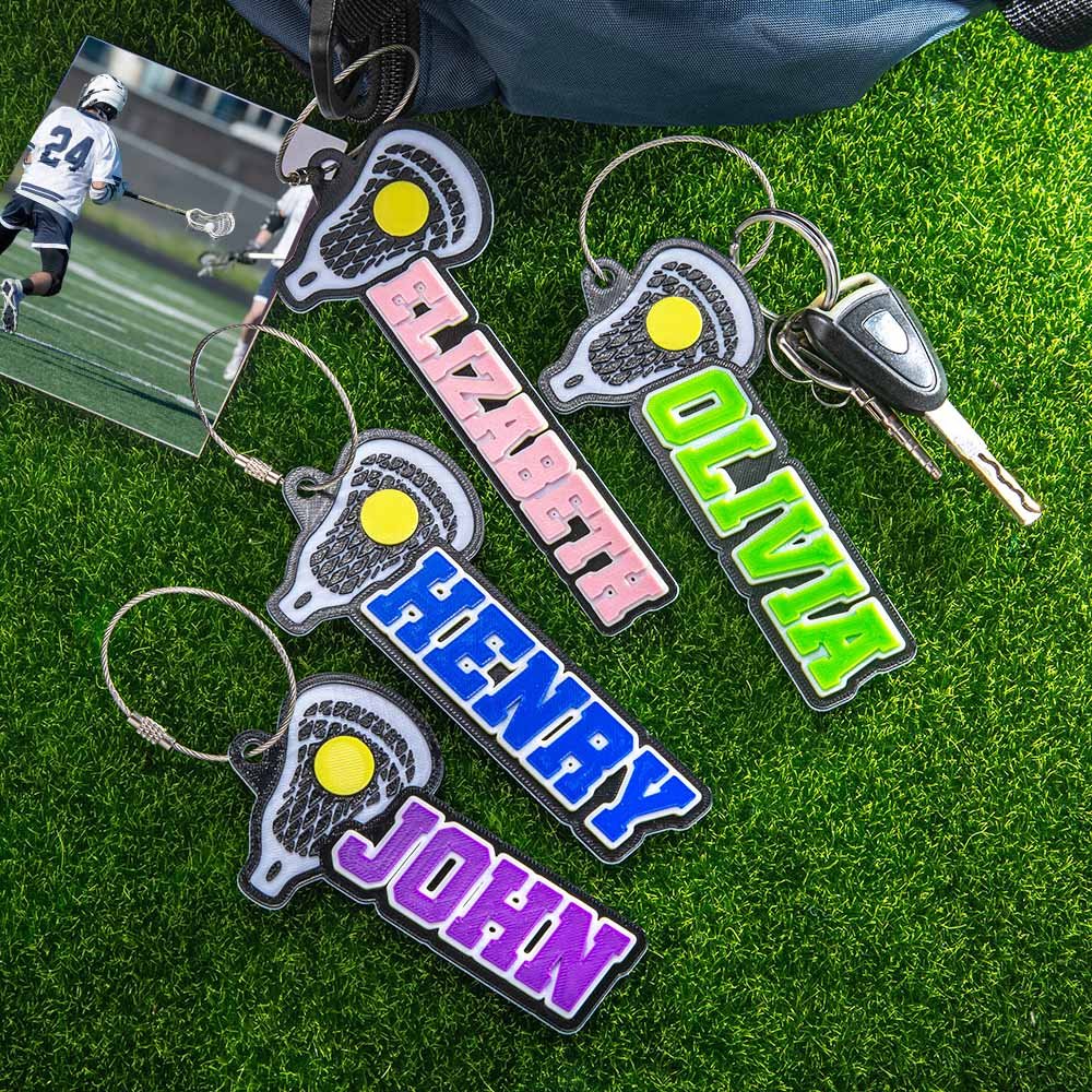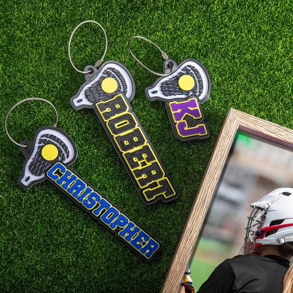 Disponibile in più colori, questo portachiavi è stato progettato per essere accattivante e divertente. Questo portachiavi 3D personalizzato per il lacrosse consente di aggiungere il proprio nome, rendendolo un accessorio davvero unico. Il design 3D della racchetta da lacrosse aggiunge un tocco sportivo, catturando l'essenza del gioco. Anche il nome è disegnato in 3D, rendendo il portachiavi più vivace e interessante.
