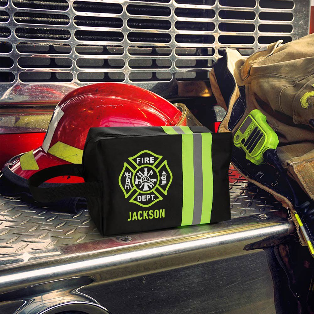 Questa borsa da toilette personalizzata può essere personalizzata con un nome, rendendola un regalo unico e speciale per gli sposi, un regalo di nozze per i vigili del fuoco o un regalo per la festa del papà/compleanno per il fidanzato. È anche un ottimo regalo per un vigile del fuoco e mostrerà il vostro orgoglio di pompieri.