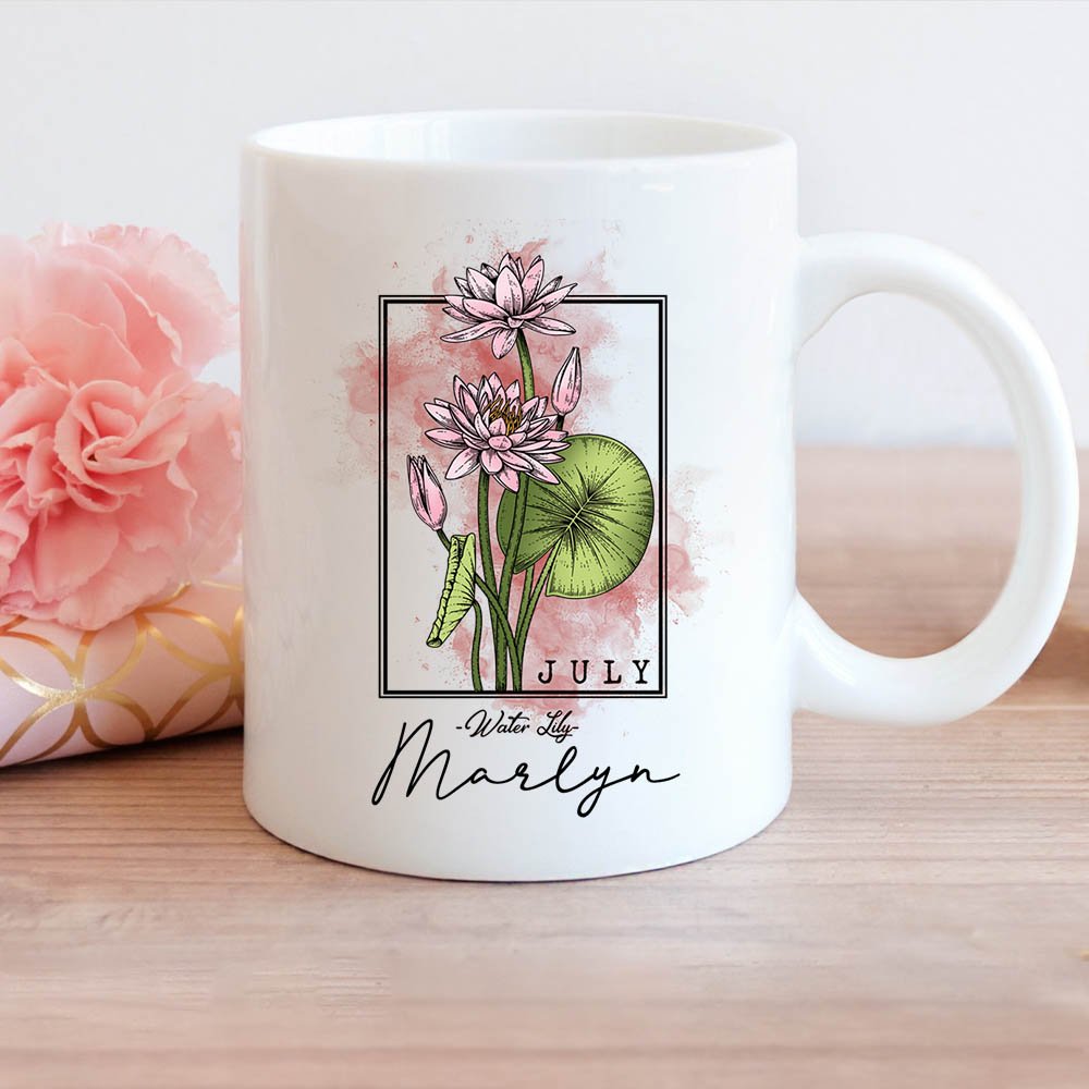 Il bouquet di fiori di nascita dipinto ad acquerello sulla tazza presenta colori vivaci e accattivanti. Ogni fiore di nascita ha un significato speciale e simboleggia le caratteristiche delle persone nate in quel mese specifico.