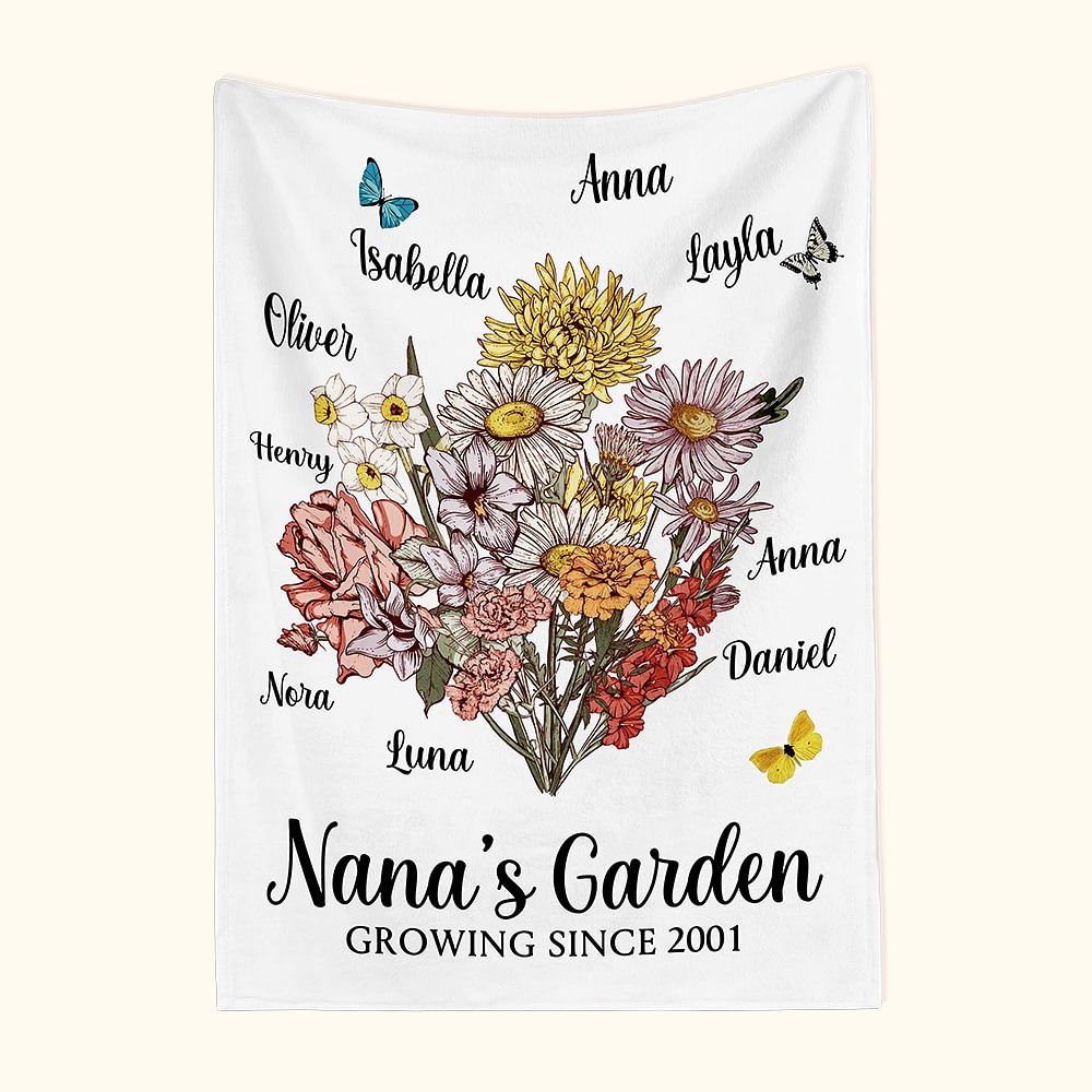 Oltre a scegliere i fiori di nascita, possiamo personalizzare questa coperta con i nomi vostri e della vostra famiglia e registrare l'anno, rendendola un ricordo davvero caldo e significativo!
