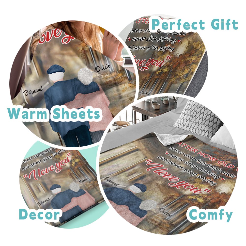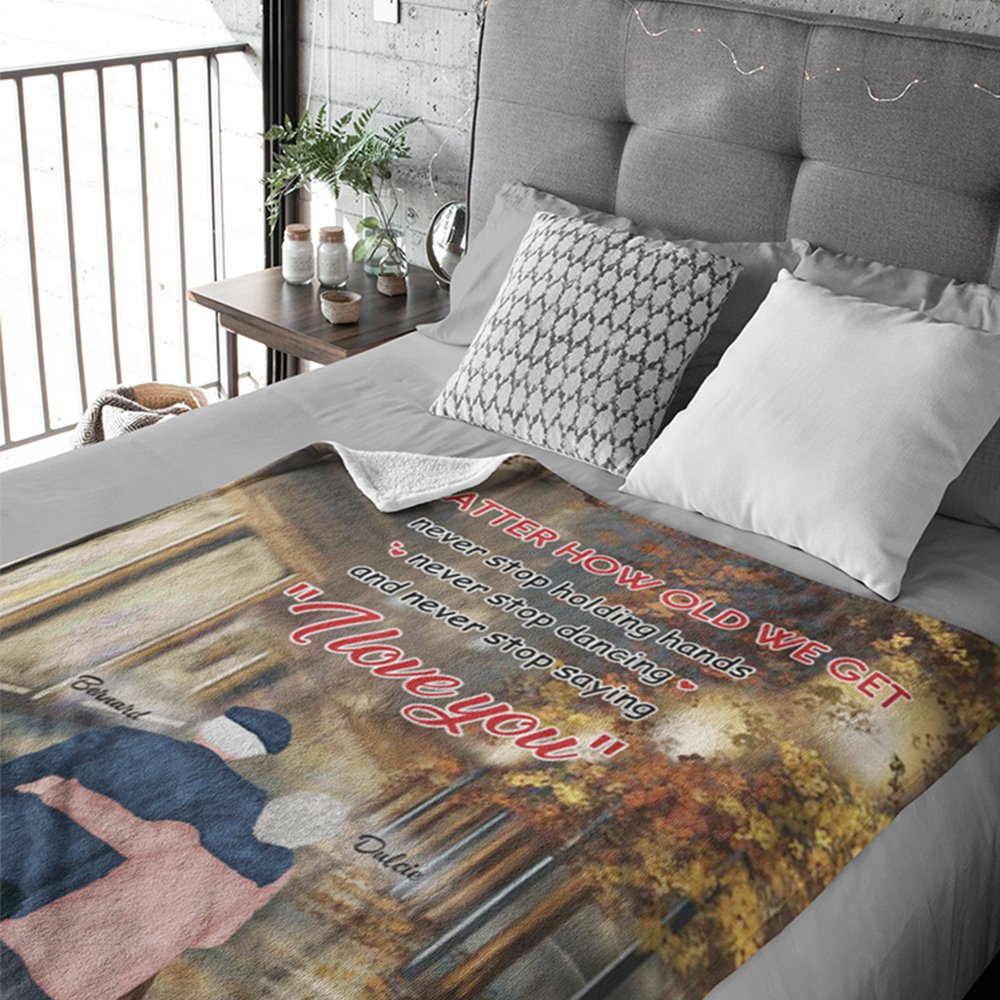 La citazione "No Matter How Old We Get Never Stop Holding Hands" celebra l'amore indissolubile che condividete con il vostro amante. Fate in modo che questo amore romantico duri per sempre stampando citazioni romantiche sulla coperta e personalizzandola con i vostri nomi.
