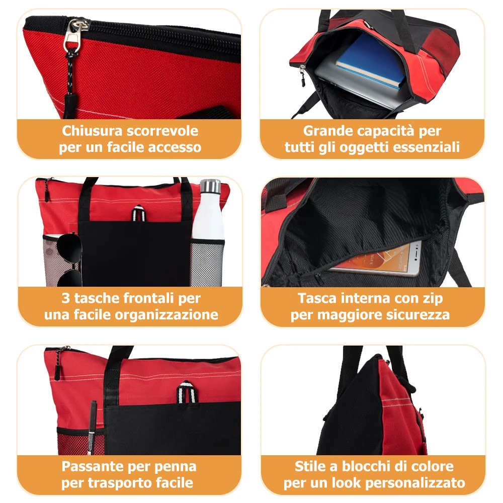 Realizzata in resistente tessuto Oxford, è progettata per accompagnarti nella routine quotidiana. Le cuciture rinforzate e la struttura solida assicurano durata nel tempo, mentre la chiusura con cerniera protegge in sicurezza tutto ciò che porti con te durante gli spostamenti.