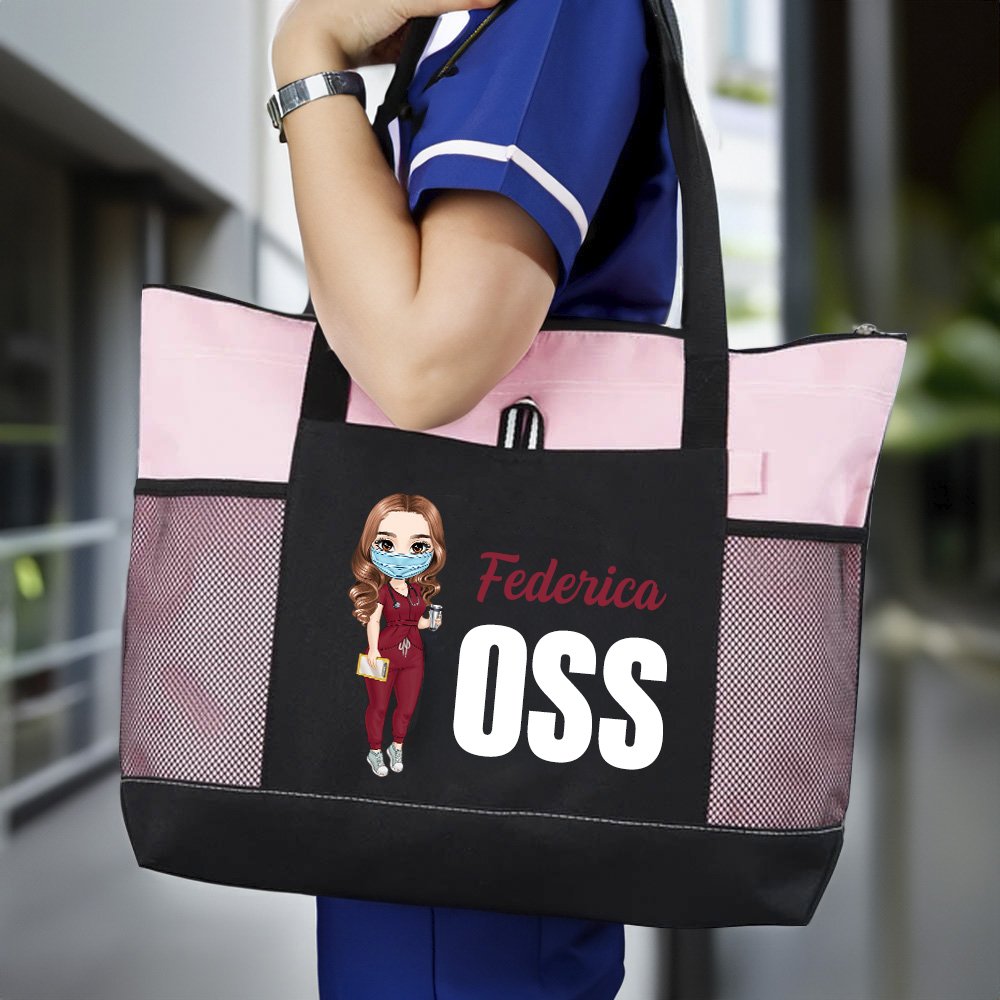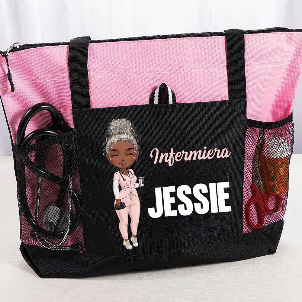 Questa borsa è pensata per chi lavora ogni giorno nel settore sanitario e si prende cura degli altri con dedizione e professionalità. Puoi scegliere il colore che preferisci e personalizzare il design con un’infermiera in stile cartone animato, aggiungendo il tuo nome e il tuo titolo professionale. Un modo originale per esprimere la tua identità professionale.