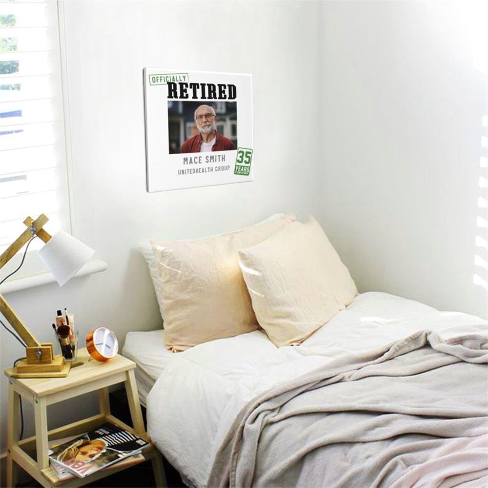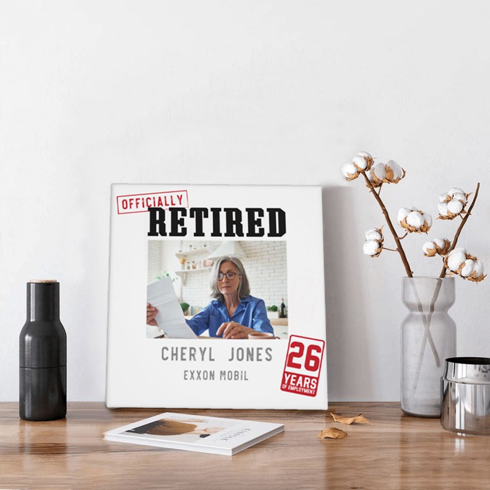 Questo quadro su tela può essere personalizzato con il nome del pensionato, il nome dell'azienda, gli anni di lavoro e la foto preferita, diventando così una decorazione murale unica e significativa. Perfetto per dimostrare l'apprezzamento per la dedizione e il duro lavoro svolto negli anni.